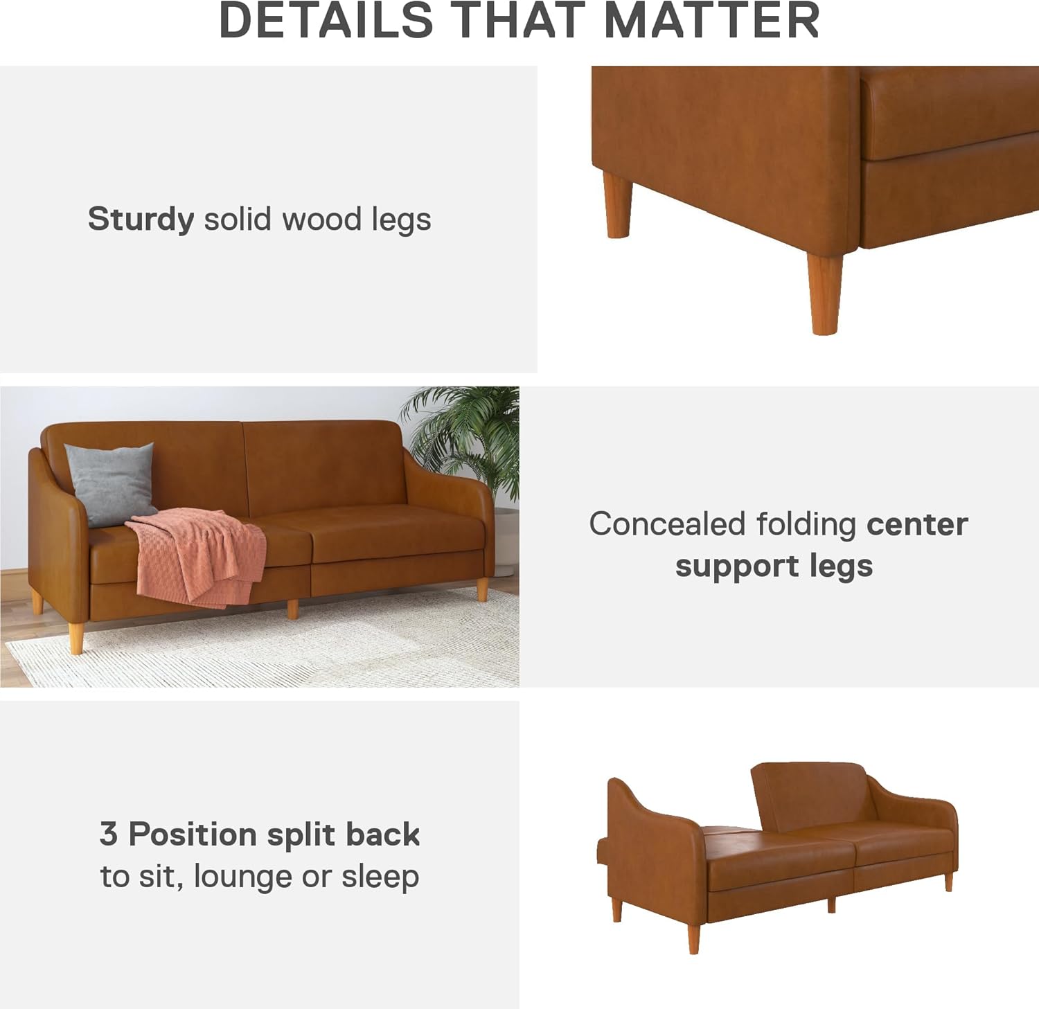 Beyond the visual appeal, the leather’s texture contributes to the sofa’s comfort and longevity. It’s thick enough to resist wear but supple enough to maintain a cozy feel after hours of sitting. Cleaning is straightforward; a gentle wipe with a slightly damp cloth keeps it looking pristine without the risk of damage. Supported by sturdy tapered birch legs with non-slip feet, the finish complements a robust frame that effortlessly supports up to 600 pounds. Here’s a quick summary of what we love about the burgundy leather finish: