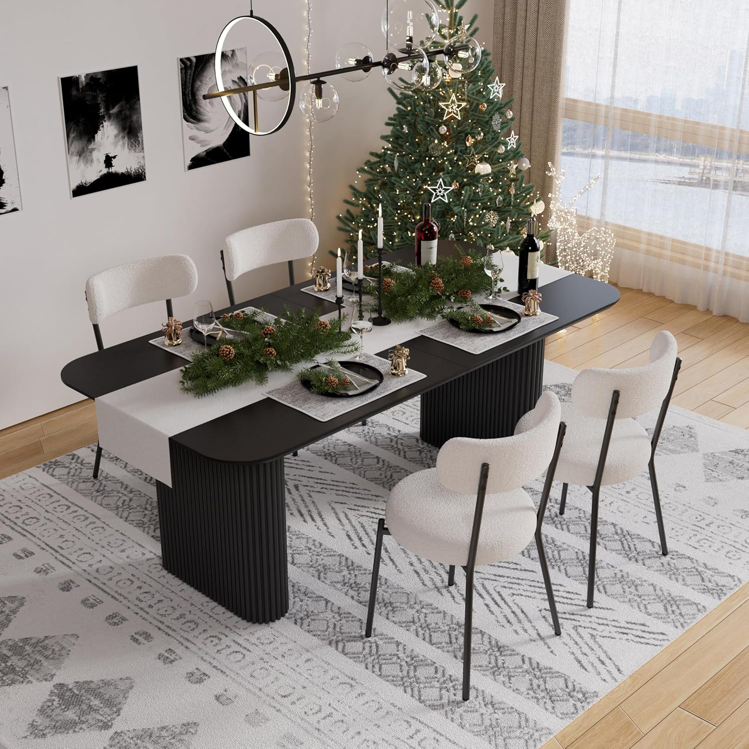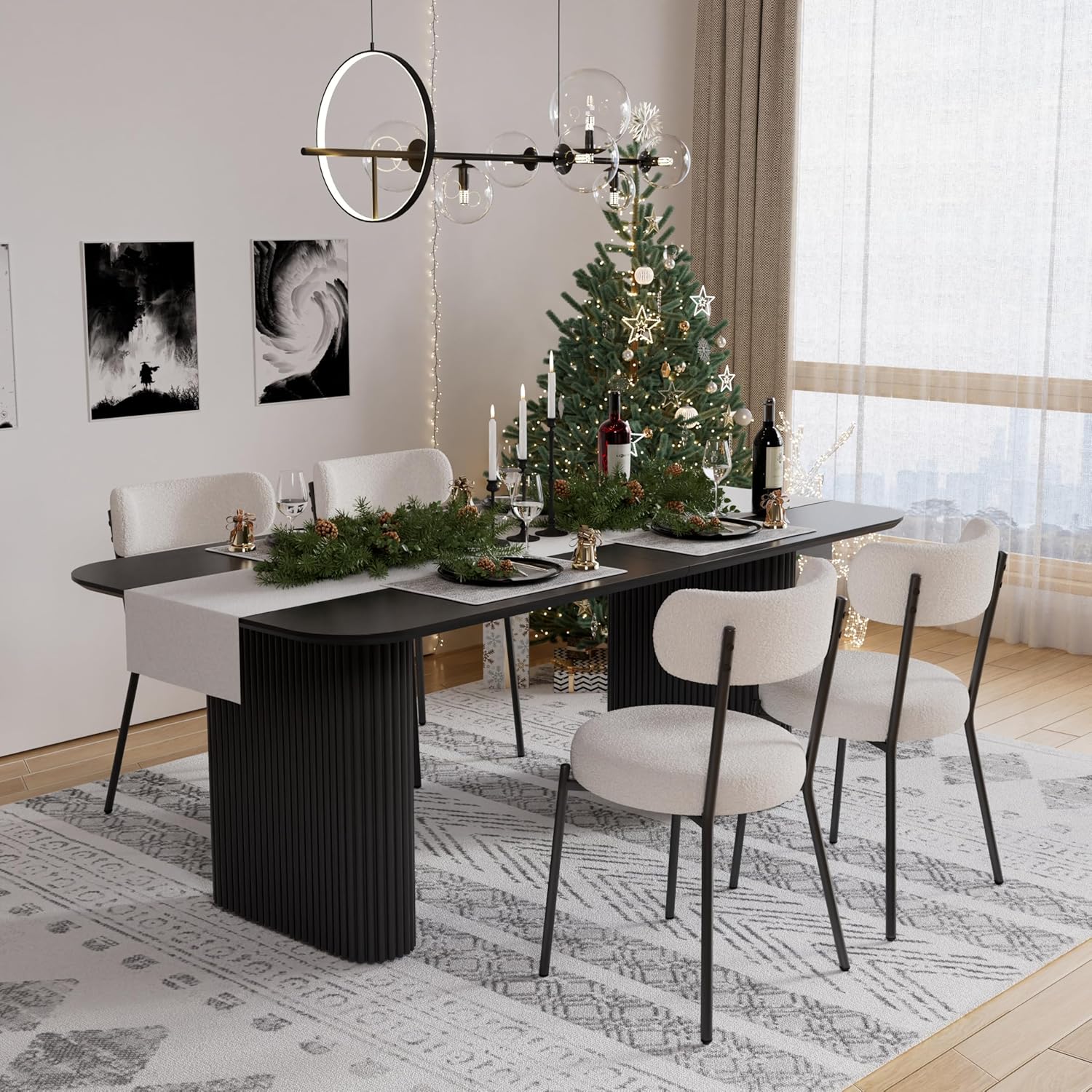 From the moment we saw this dining set, it was clear that thoughtful design was at the core of its creation. The table’s‌ oval corners not onyl lend a sleek, modern aesthetic ‍but also play an critically important role in safety by reducing the risk of ⁣accidental bumps⁣ and⁢ scrapes – a ​welcomed feature for households with children. The elegant black‌ finish complements the crisp white and black boucle upholstery on the chairs, creating a sophisticated yet‌ inviting atmosphere. We particularly appreciated the ‍ergonomic⁣ curved backrests combined with high-elastic foam cushions, which promise comfort during those long meals or extended gatherings.
