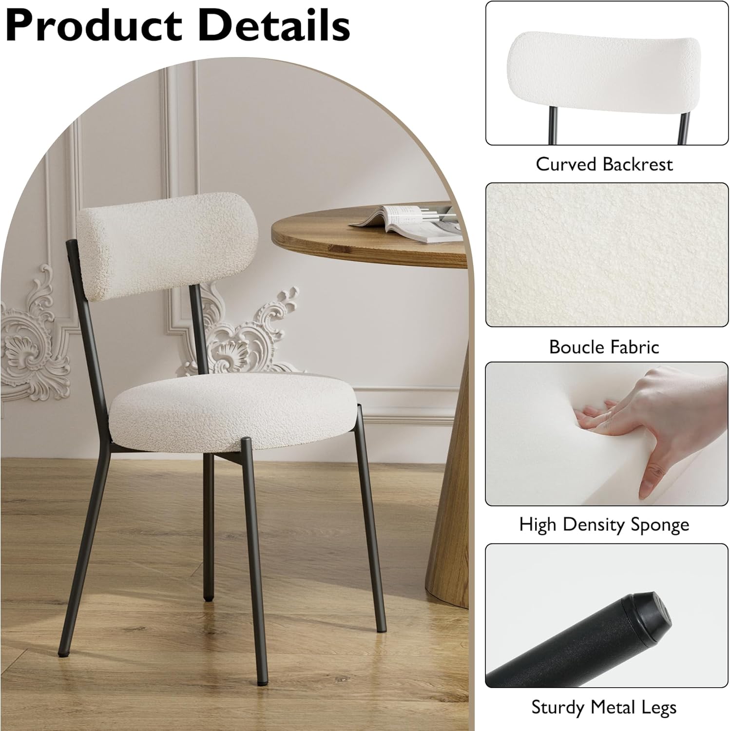 Chairs Black boucle upholstery ‍with foam cushions Maintains shape & color, ergonomic support