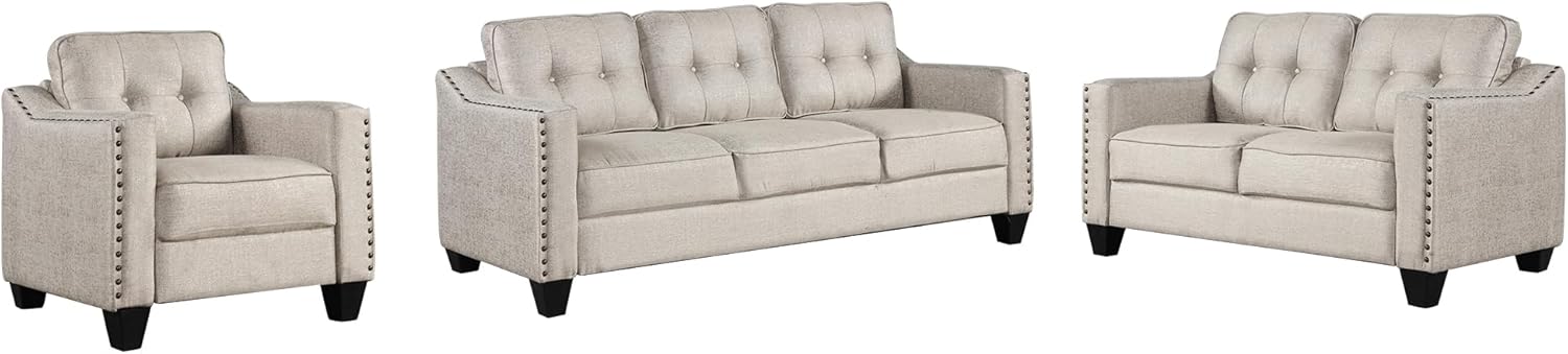 Visual balance is another strength of this design. The set’s clean lines and streamlined shape, combined with the detailed tufting and brass nails, provide a sophisticated look without compromising functionality. Its neutral tone allows it to blend seamlessly into any living space-whether a cozy apartment or a spacious living room-enhancing the room’s decor while providing ample seating options. Below is a quick overview of key design features that contribute to its refined style: