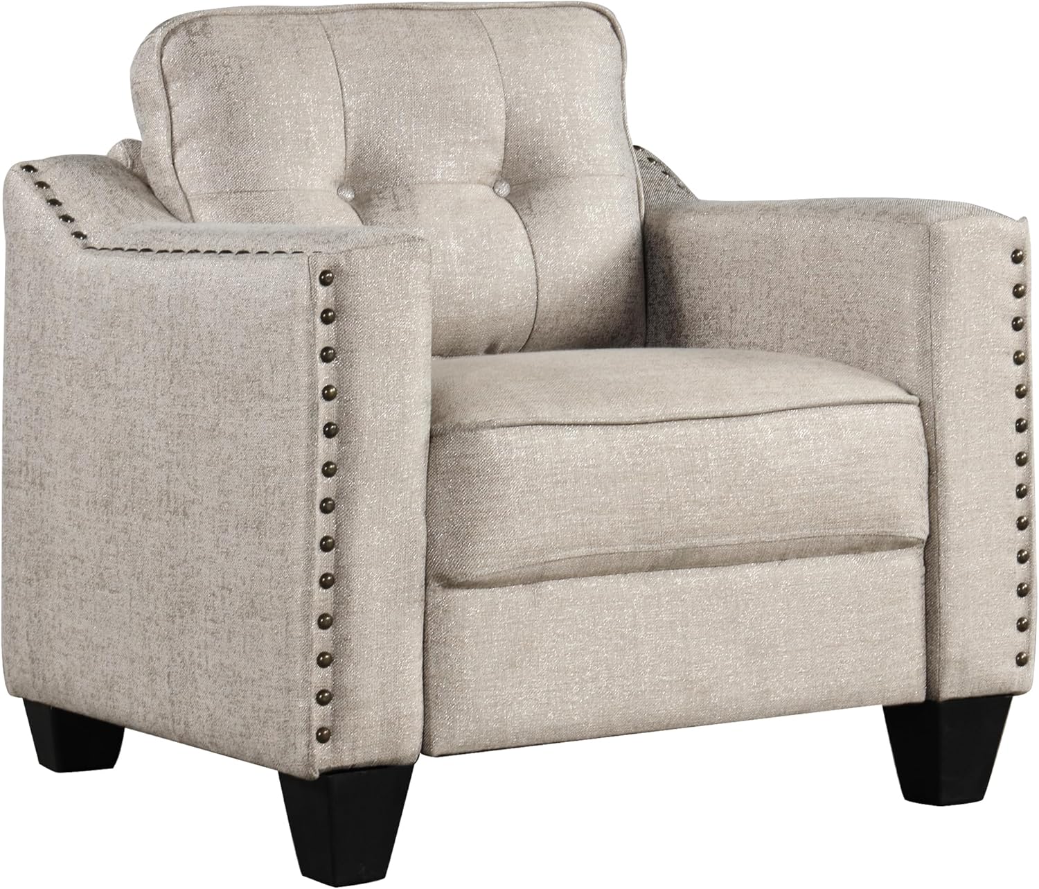 | Elegant button tufted cushions bring a polished, timeless look | Neutral beige fabric may show stains more easily |