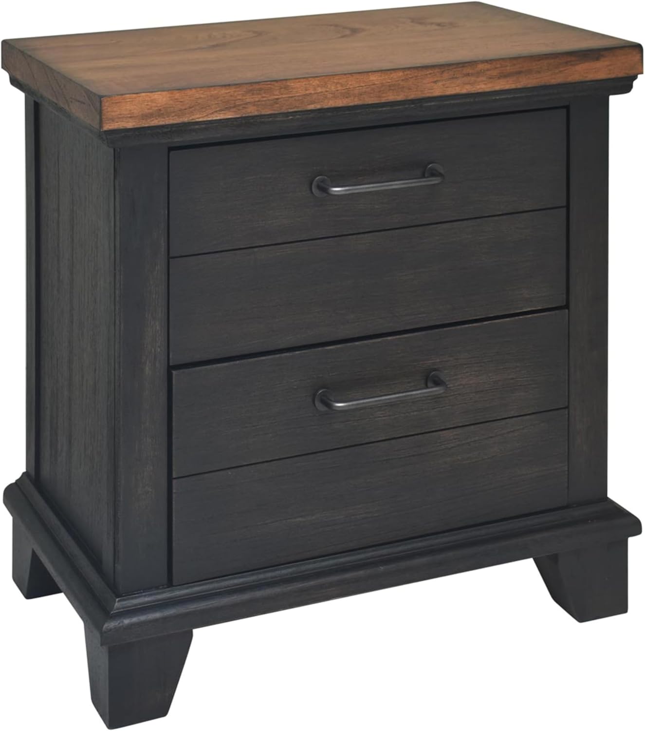 We appreciate how this nightstand blends rustic charm with practical storage solutions.It features two ultra-deep drawers that provide ample room for keeping bedtime essentials neatly out of sight. The side drawer glides ensure that opening and closing the drawers is smooth and effortless, even when fully loaded. The planked-effect drawer fronts add a farmhouse-inspired aesthetic, complementing the rich chocolate finish while giving each drawer a unique texture that enhances the overall look.