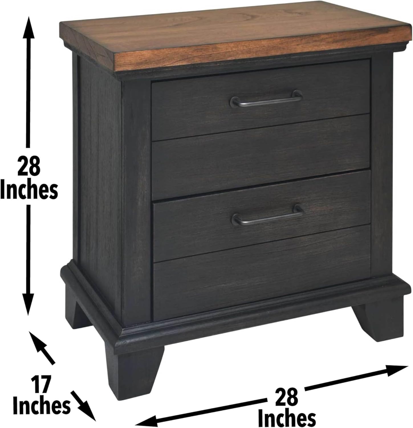 Our experience with this rustic farmhouse-inspired nightstand highlights its charming chocolate finish,which pairs beautifully with the contrasting honey-stained tops and cap rails. The design embraces a warm, inviting aesthetic thanks to the planked-effect drawer fronts that add subtle texture and depth to any bedroom setting. Functionality is just as impressive, with two ultra-deep drawers that provide ample bedside storage ideal for books, gadgets, or nighttime essentials. Smooth side drawer glides make accessing these spacious compartments effortless, ensuring a seamless blend of style and convenience.