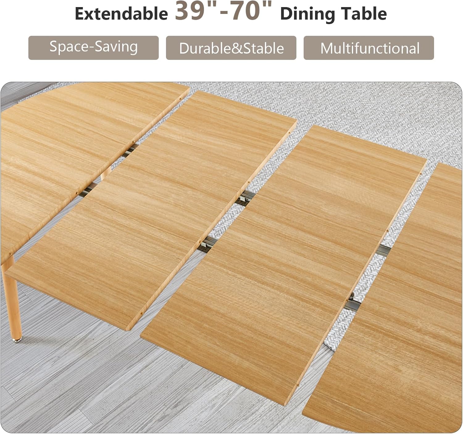 - Expandable length: From a compact 39″ round table to a spacious 70″ oval surface, fitting your evolving space requirements with ease.