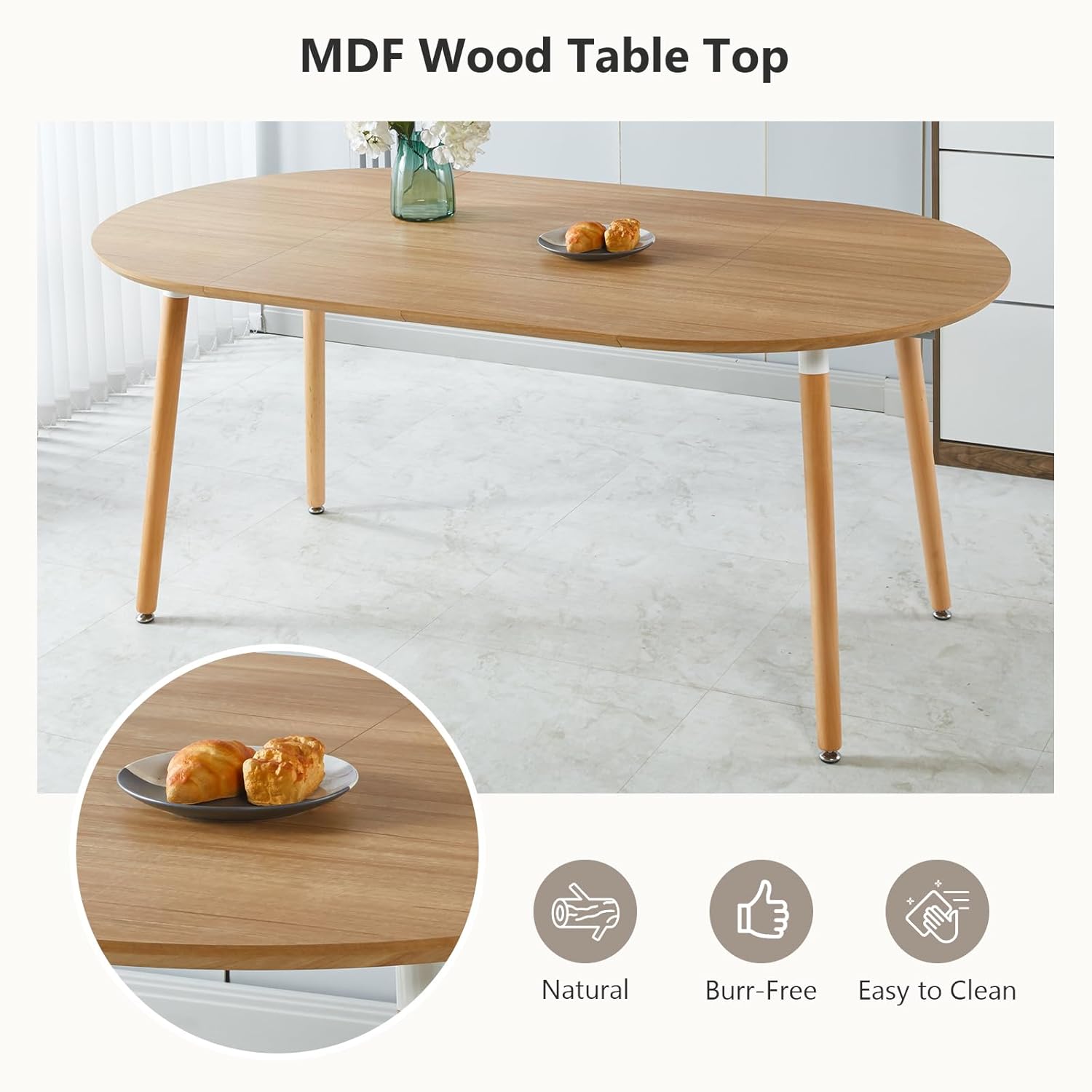 | MDF Tabletop | Easy to clean and maintain | Ideal for both dining and work surfaces |