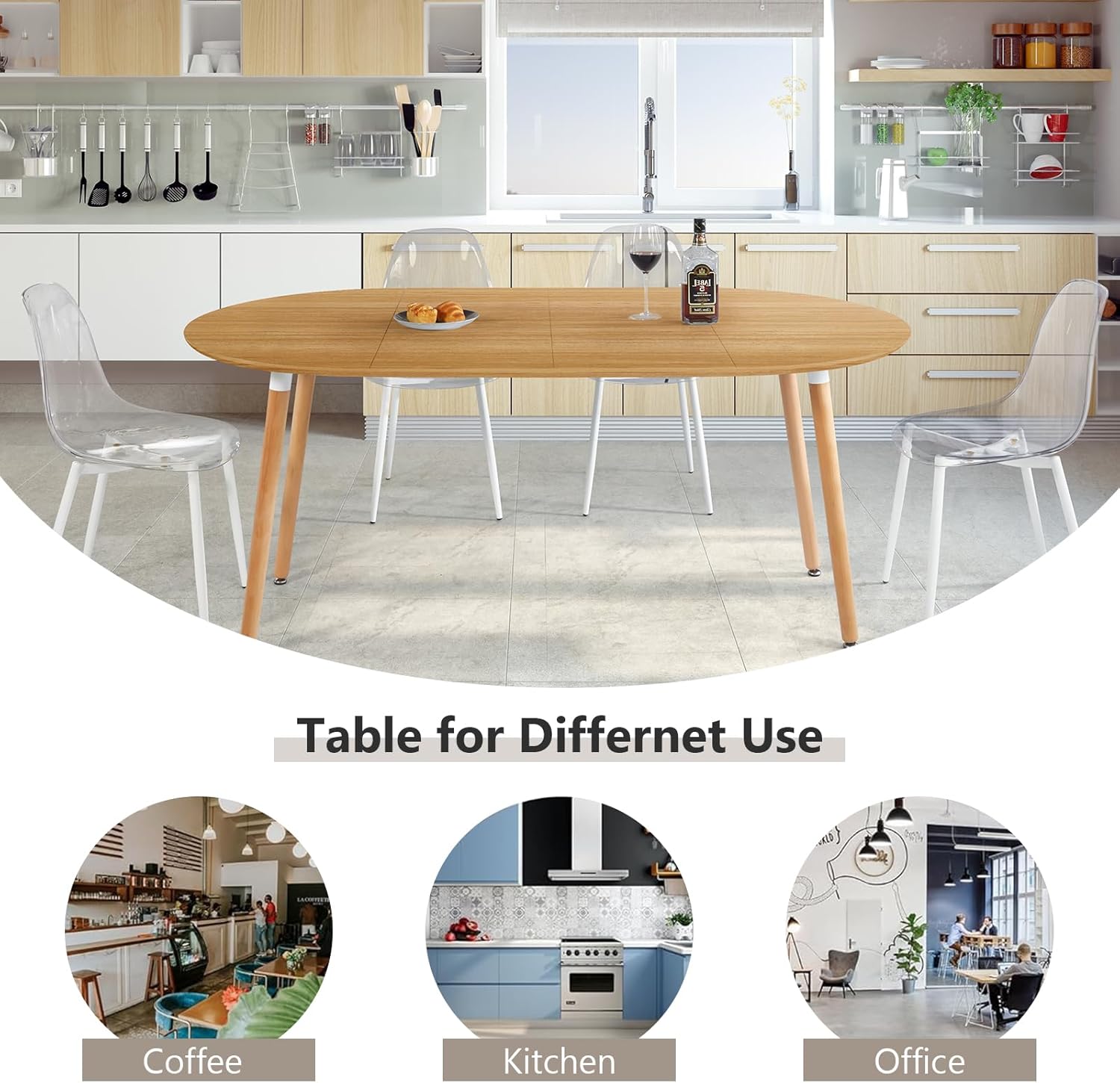- Metal legs with wood color finish: Offering solid support while blending seamlessly with the wooden tabletop for a balanced modern look.
