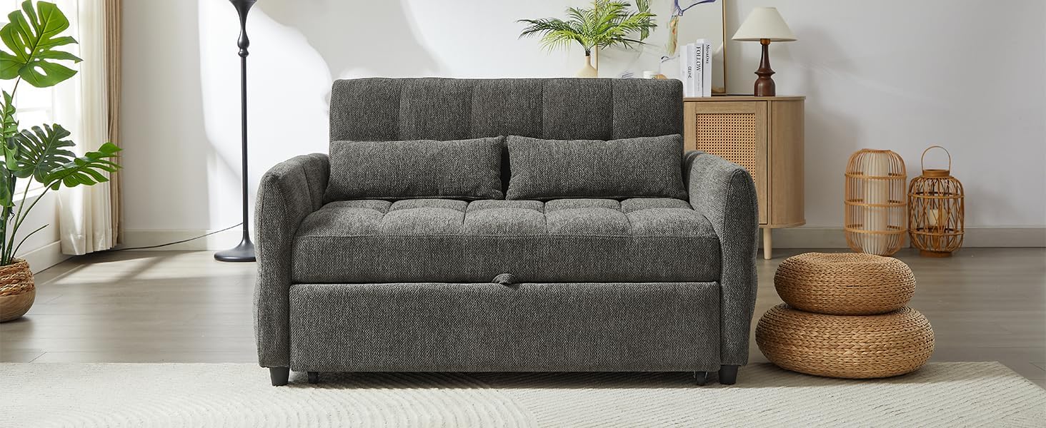 Designed with ⁣versatility and modern living in mind, this compact⁤ loveseat effortlessly ‌transforms into ‌a full sleeper bed, ⁣making it a ⁤perfect fit for small apartments and⁤ guest rooms. Its sleek grey chenille upholstery adds a refined touch while blending seamlessly with ⁤various décor styles.⁤ The premium tufted⁤ fabric​ stands out not only for ⁢its elegance but also for its durability, ⁢resisting everyday wear‍ and even pet claws. Coupled with 5.9″ high-density foam cushions, it offers a balanced combination of comfort and ‍support whether used ⁢for sitting or sleeping. The reinforced eucalyptus-plywood and iron frame promise longevity and stability,catering ⁤to both relaxed evenings and productive remote work sessions.