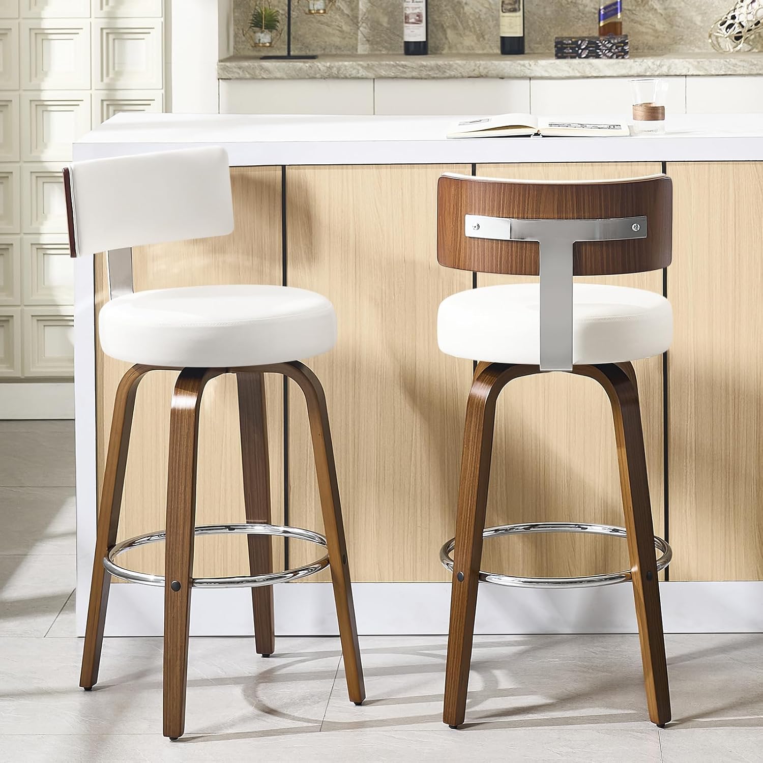 Our experience with these bar stools reveals how effortlessly they blend into a range of interior aesthetics. The sleek walnut wood legs and clean, curved lines embrace the core of mid-century modern design, making them a natural fit for minimalist and Scandinavian settings.Their neutral white faux leather upholstery adds a subtle touch of elegance without overpowering a room’s existing palette, while the ergonomic backrest ensures comfort remains a priority. Whether you place them at a kitchen island, a contemporary bar, or a vintage-inspired nook, these stools add warmth and sophistication without clashing.