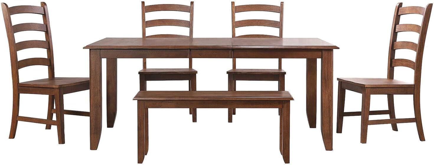 Upon unboxing, the set instantly stood out with its warm, distressed Amish Brown finish that lends a cozy, country cottage charm to any dining area. Crafted from kiln-dried solid rubberwood and engineered MDF, the table presents a sturdy yet refined presence. The matte lacquer enhances the natural wood grain while providing protection against everyday wear,moisture,and spills. What caught our attention most was the 12-inch removable leaf, which effortlessly extends the table from seating four comfortably to up to eight. This feature was especially impressive given the simple assembly required-we were able to attach the tapered legs and set the chairs in place without hassle.The bench offers a casual, versatile seating option suitable for two adults or three children, complementing the four slat-back chairs with their delicately arched ladder backs that provide both style and ergonomic support.