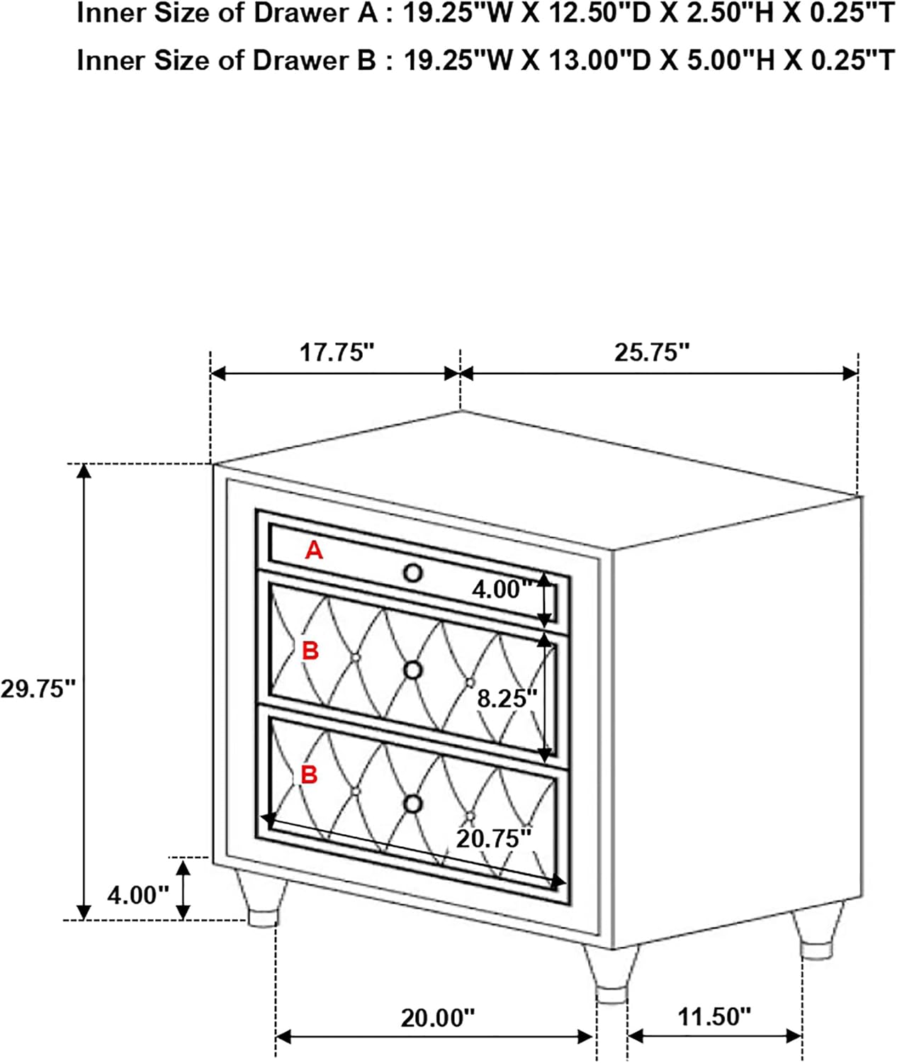 - Durable dovetail joinery on drawers