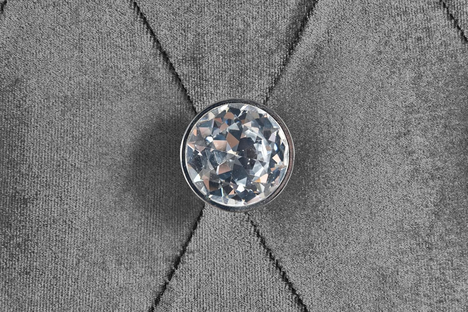 | Material | Soft gray velvet upholstery with tufting & crystal-like knobs |