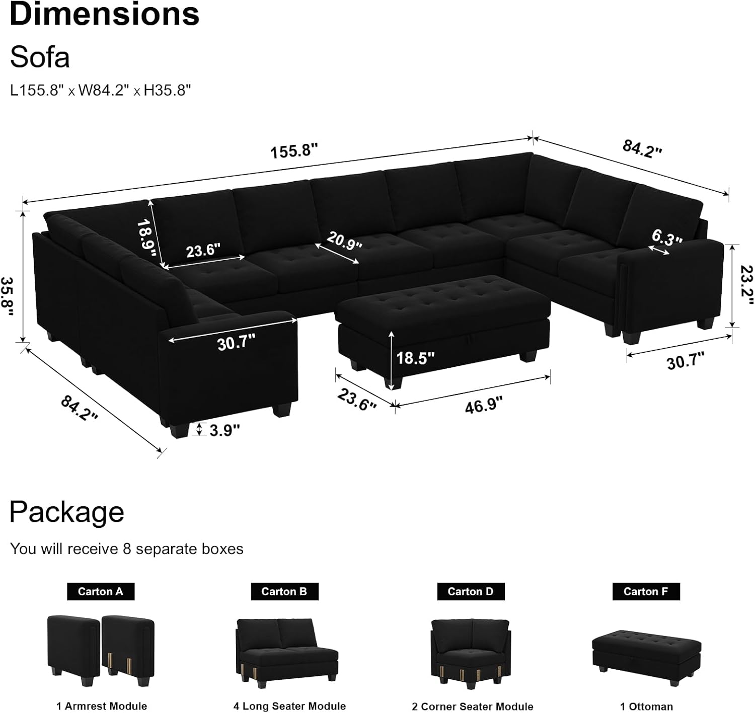 We appreciated the versatility of the modular design, which easily adapts to our changing space and lifestyle needs.Whether configured as a traditional U-shape or rearranged for a cozy L-shape, it complements our interior beautifully.The ottoman’s hidden storage allowed us to reduce clutter effortlessly, making the room look tidy and inviting. Though delivery can come in separate boxes, patience during setup pays off with a sturdy, stylish centerpiece that invites relaxation and socializing alike. For anyone seeking a sofa that balances style, comfort, and practicality, this set is a solid choice.