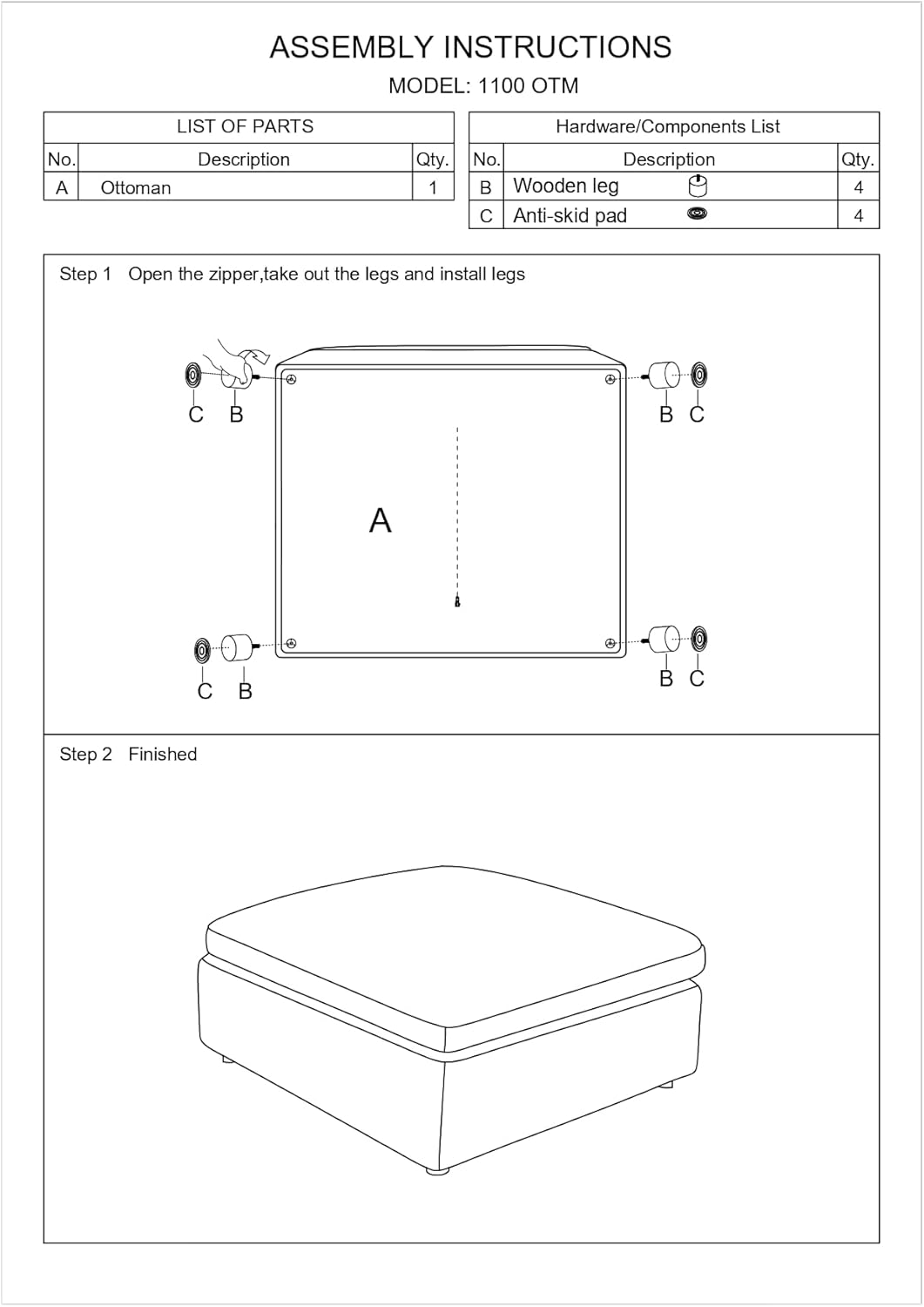 - Keep the ottoman elevated on rugs or carpets to protect the wooden frame