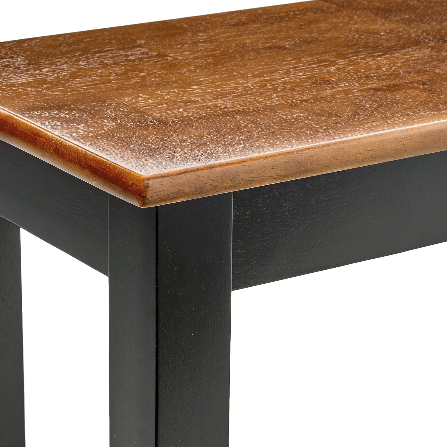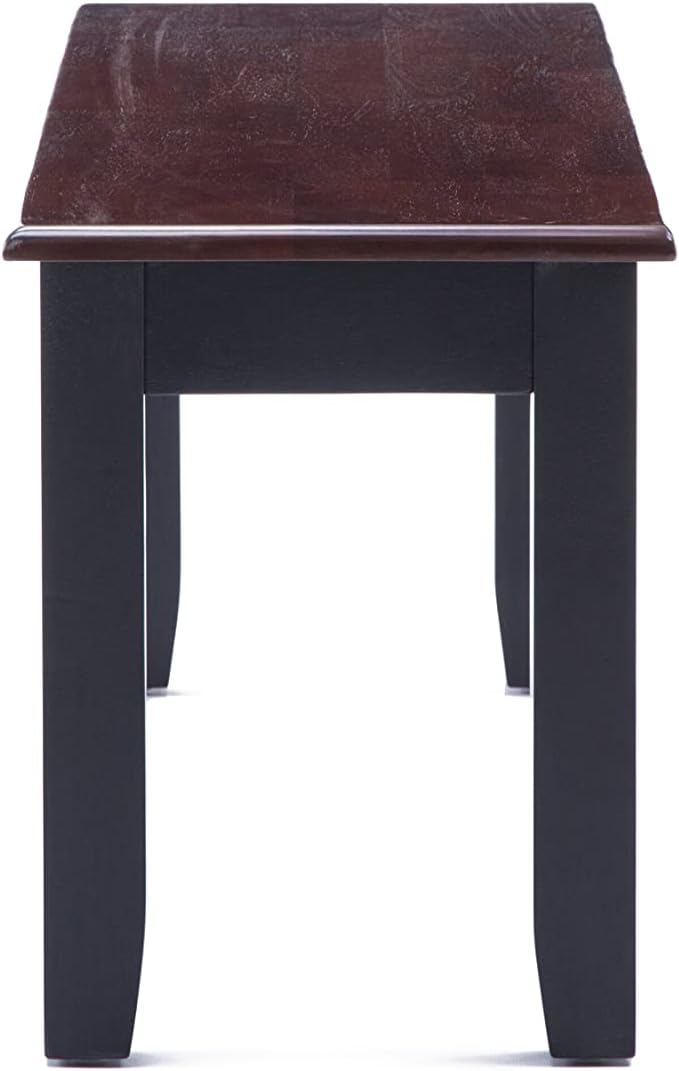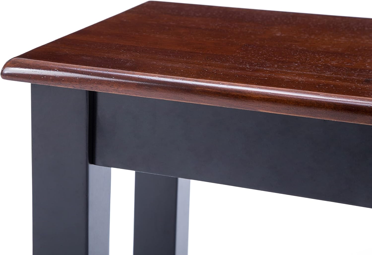 At first glance, the bench impresses with its clean Shaker-style silhouette and meticulous craftsmanship. The fusion of solid hardwood legs and apron with a wood veneer and MDF seat creates a sturdy yet elegant seating option. The smooth lines and two-tone black and cherry finish give it a timeless appeal that fits seamlessly in various settings – from an entryway to a cozy window nook or as a complement to matching dining chairs. The backless design offers versatility, making it easy to pair or tuck away without overwhelming the space.