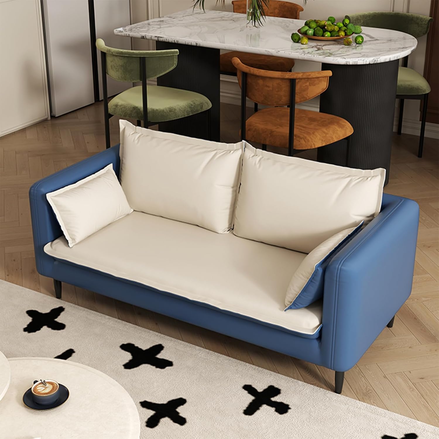 Finding the perfect loveseat that balances style, comfort, and space-saving design can be quite a challenge, especially when working with limited room. Recently, we had the chance to bring home the Faux Leather Loveseat Sofa – a sleek, modern 2-seater couch that promises to fit effortlessly into small spaces without sacrificing coziness or aesthetic appeal. With its clean lines, soft upholstery, and thoughtfully curved arms, this petite blue sofa intrigued us right from the start. Over time, we’ve really gotten to know how it performs: from its supportive cushioning to its sturdy metal frame, not to mention its surprisingly easy assembly. in this review, we’ll share our full experiance with this modern small couch and explore whether it lives up to the claims of comfort, durability, and space-smart design.