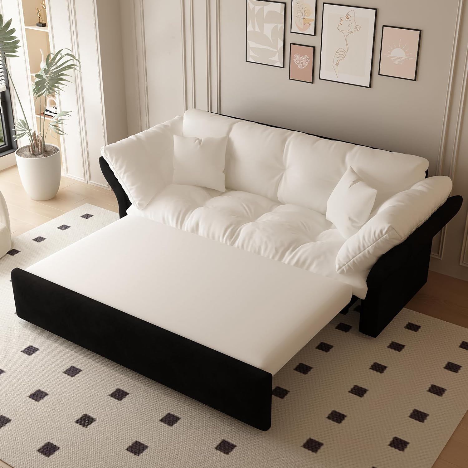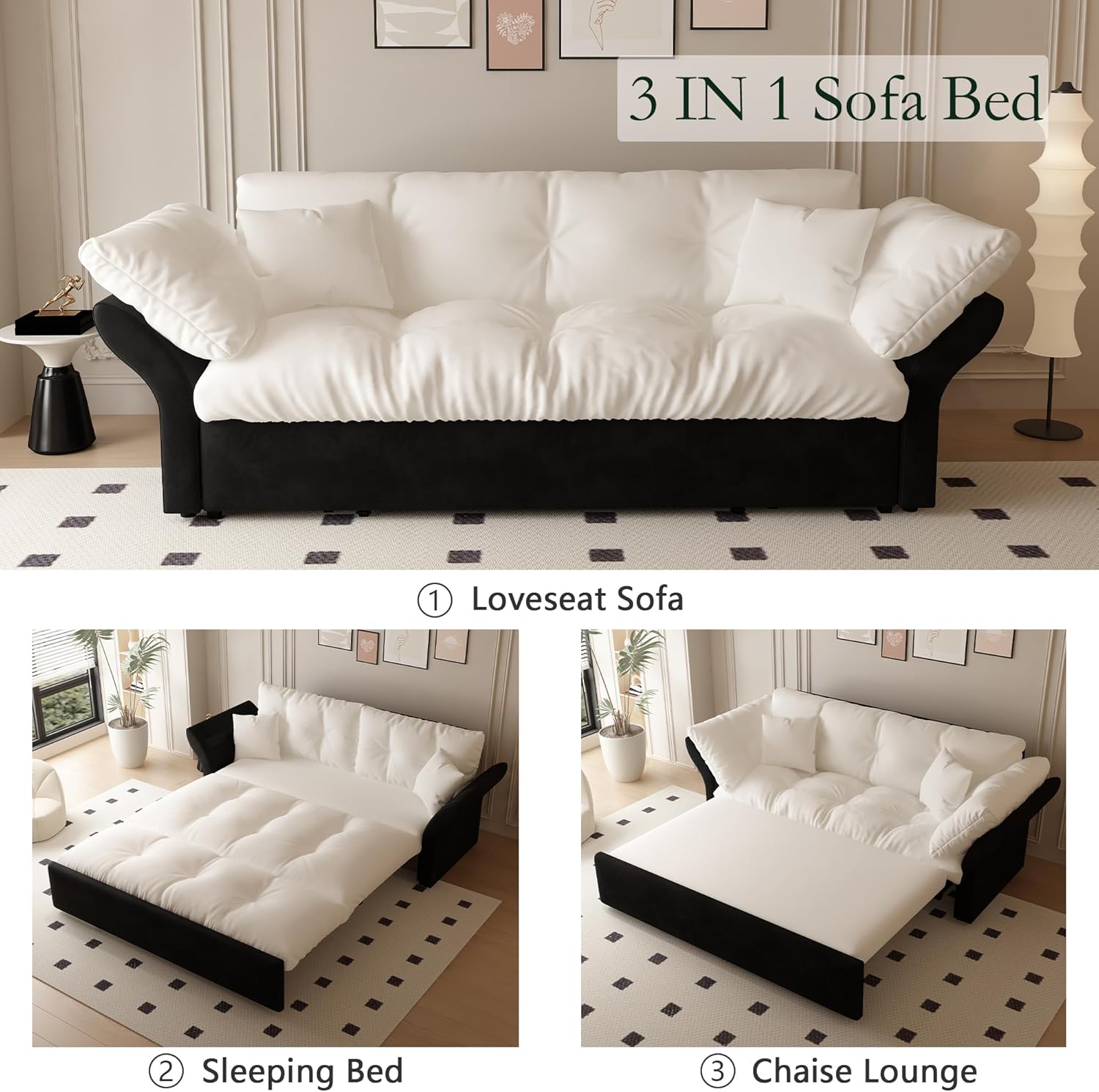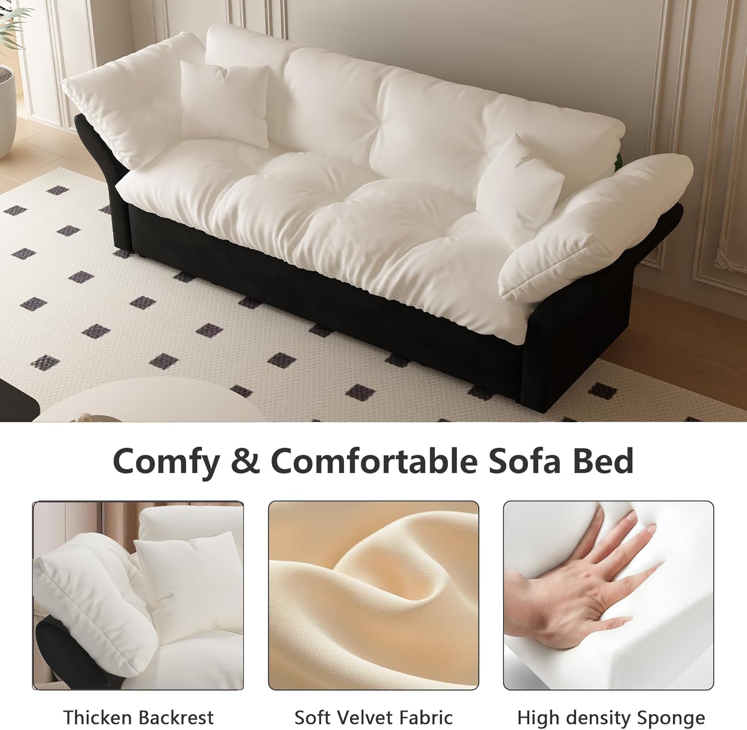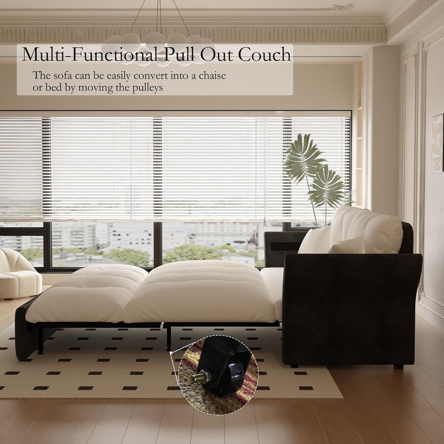 beyond its visual charm, the build quality truly impresses. Crafted with strong steel tubing, double reinforcements, and stabilizing legs, it promises sturdy balance and durability, even during frequent conversions. The intuitive pull-out mechanism is supported by multiple wheels for effortless transformation between sofa and bed, while practical side storage offers a convenient space-saving solution to keep essentials within reach. Its versatile design effortlessly bridges seating, lounging, and sleeping without sacrificing style or function.