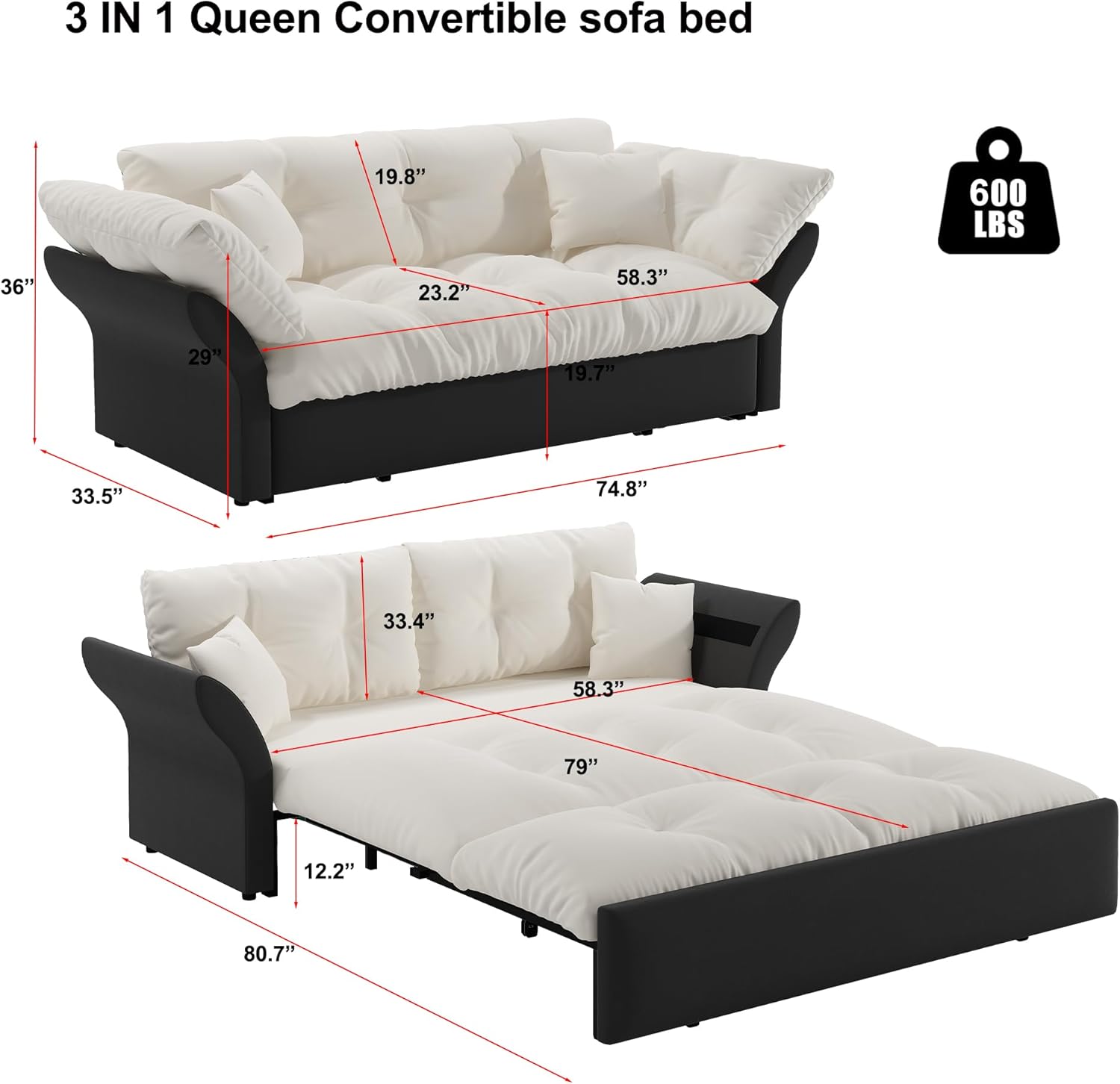 Its compact design makes it ideal for apartments, dorms, or offices where space is a premium.The smooth pull-out mechanism operates effortlessly thanks to the multiple wheels underneath, making the transformation between sofa and queen-sized bed quick and hassle-free. Plus, the side storage compartment adds a clever touch of practicality, helping keep your living area tidy without sacrificing style.