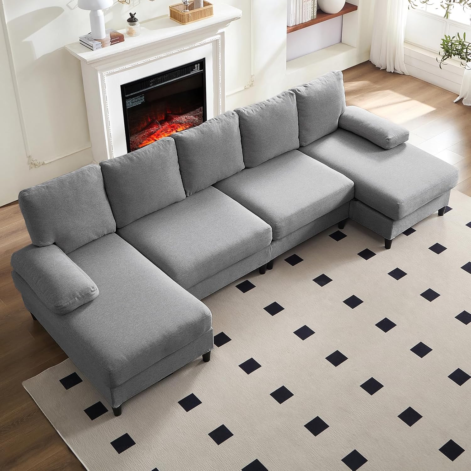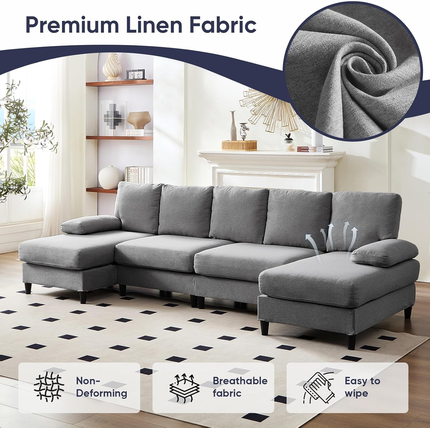 From the moment we unpacked this spacious sectional, its blend of style and comfort was instantly apparent. The breathable linen fabric in light grey not only looks refined but also feels incredibly soft to the touch, promising durability and ease of cleaning-a definite plus for everyday family use. the cushion filling,composed of elastic sponge,provides excellent support without sacrificing plush comfort,making it inviting for long lounging sessions. Its U-shaped design, featuring double chaise lounges, offers generous seating and a multifunctional layout that is superb for entertaining or simply relaxing with loved ones.
