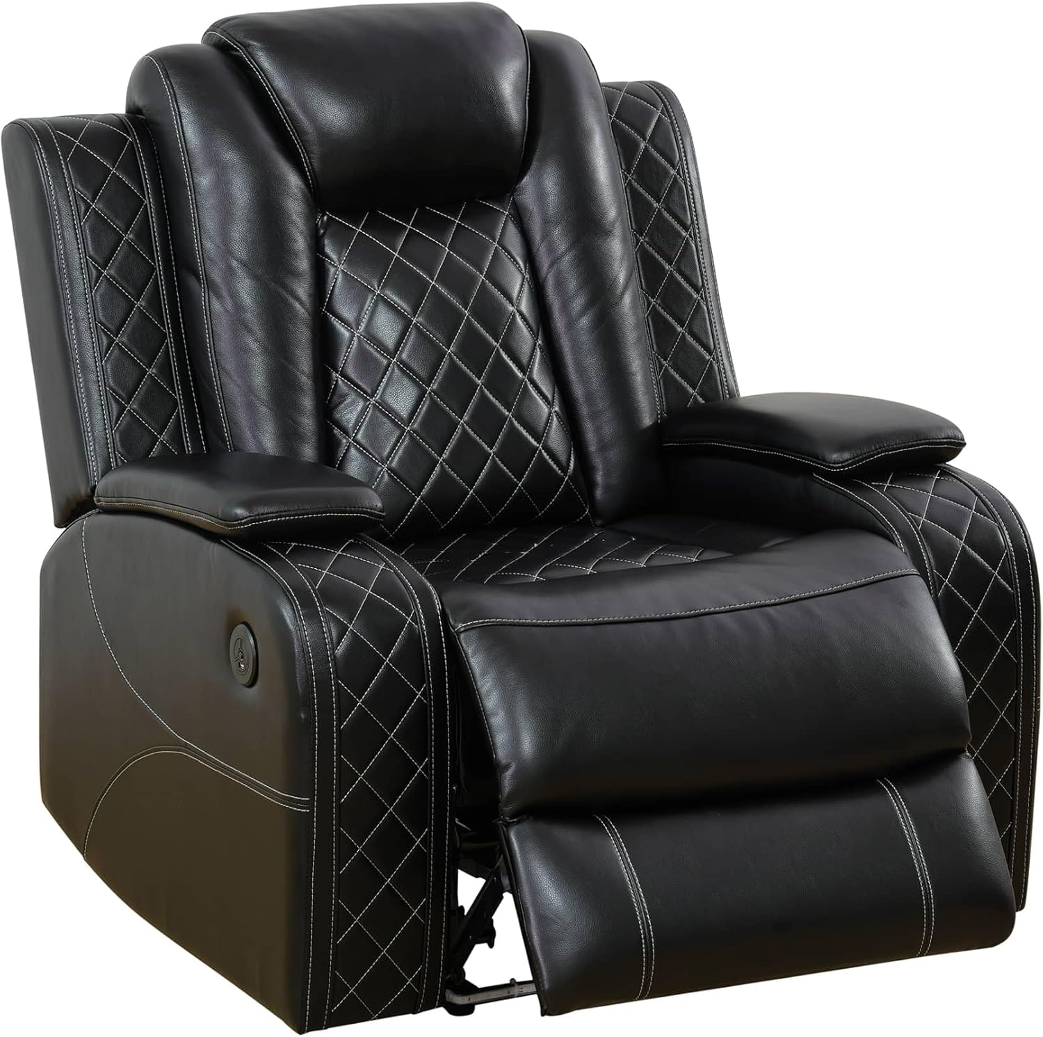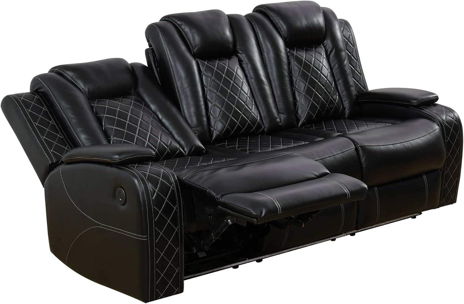 This three-piece reclining set stands out for its blend of modern technology and classic elegance.The LED lighting adds a sleek, contemporary ambiance, while the premium perforated leather ensures breathability and comfort even during extended use. We appreciate how the electric adjustable backrests offer customizable support, making it ideal for relaxing, watching movies, or even taking quick naps. The integrated USB ports and storage compartments bring practicality to the forefront, keeping essentials close at hand without cluttering your space. Durability is another highlight thanks to the sturdy wooden frame and reinforced springs, promising reliable performance over time.