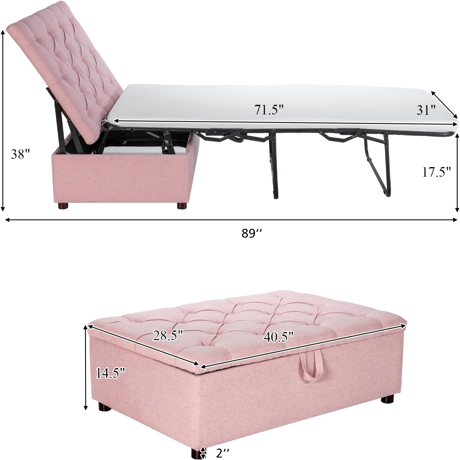 • Folds ​compactly into a stylish ottoman‌ (40.5″⁤ x 28.5″ x 14.5″) for seating or footrest