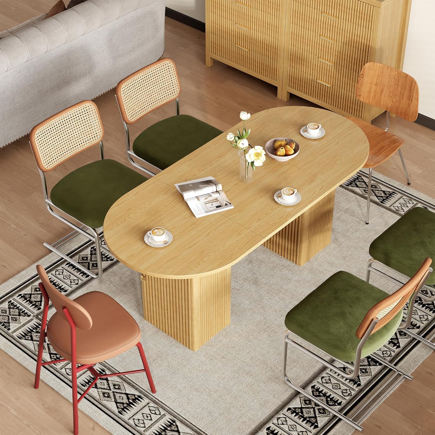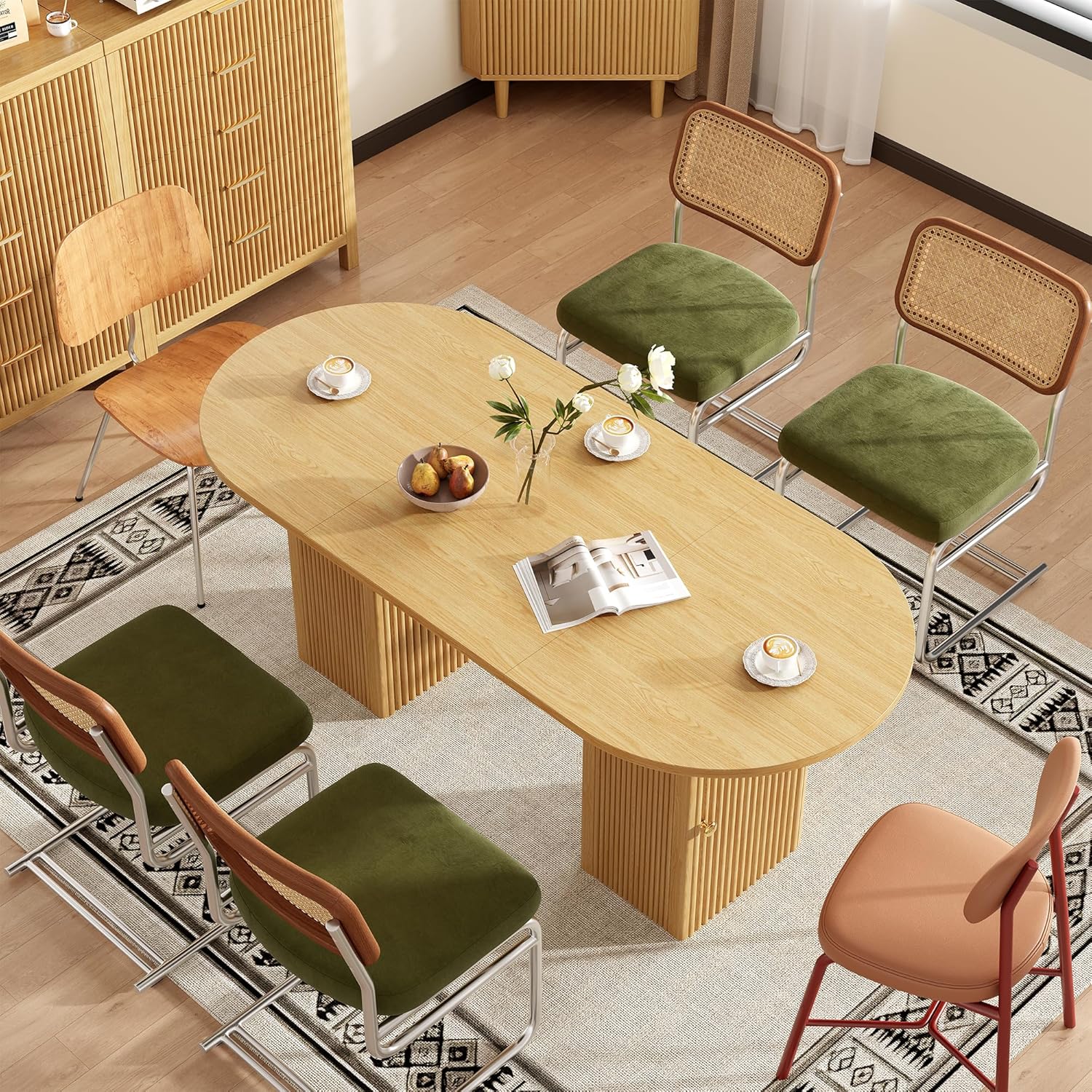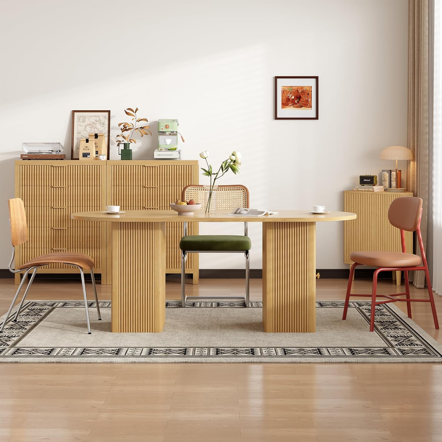 Our experience reveals that this table’s elegant, oval design pairs beautifully with a variety of interior styles, from modern to Scandinavian and mid-century inspired spaces. Its nature oak finish adds warmth without overwhelming the room, while the ribbed, textured legs introduce an understated yet sophisticated flair. The table’s compact footprint allows it to fit effortlessly into smaller kitchens or dining areas without compromising seating capacity-comfortably accommodating four to six people.For open-plan spaces, it creates a natural division between dining and living areas, enhancing flow without the need for bulky furniture. The water-resistant, scratch-proof tabletop adds practical resilience, making it suitable for busy family meals or casual gatherings.
