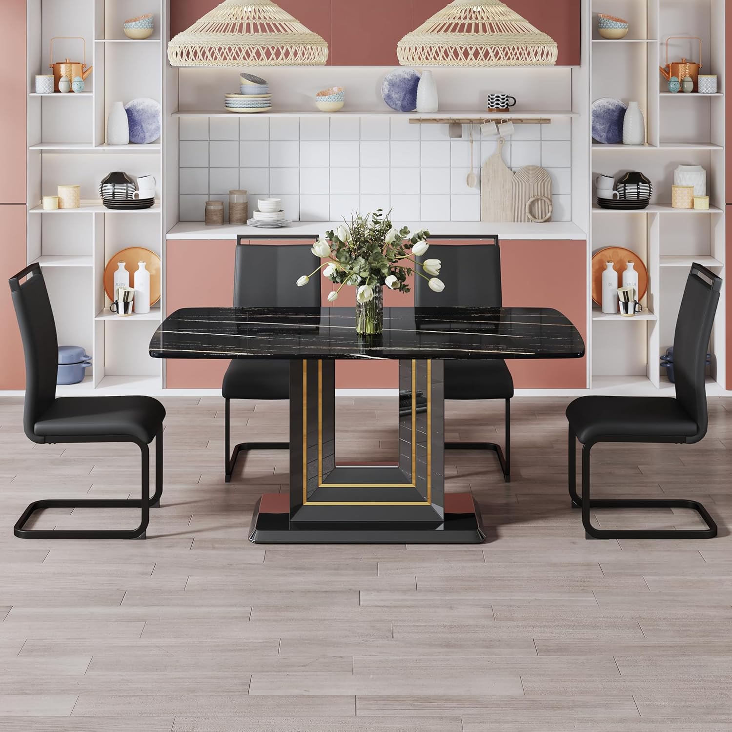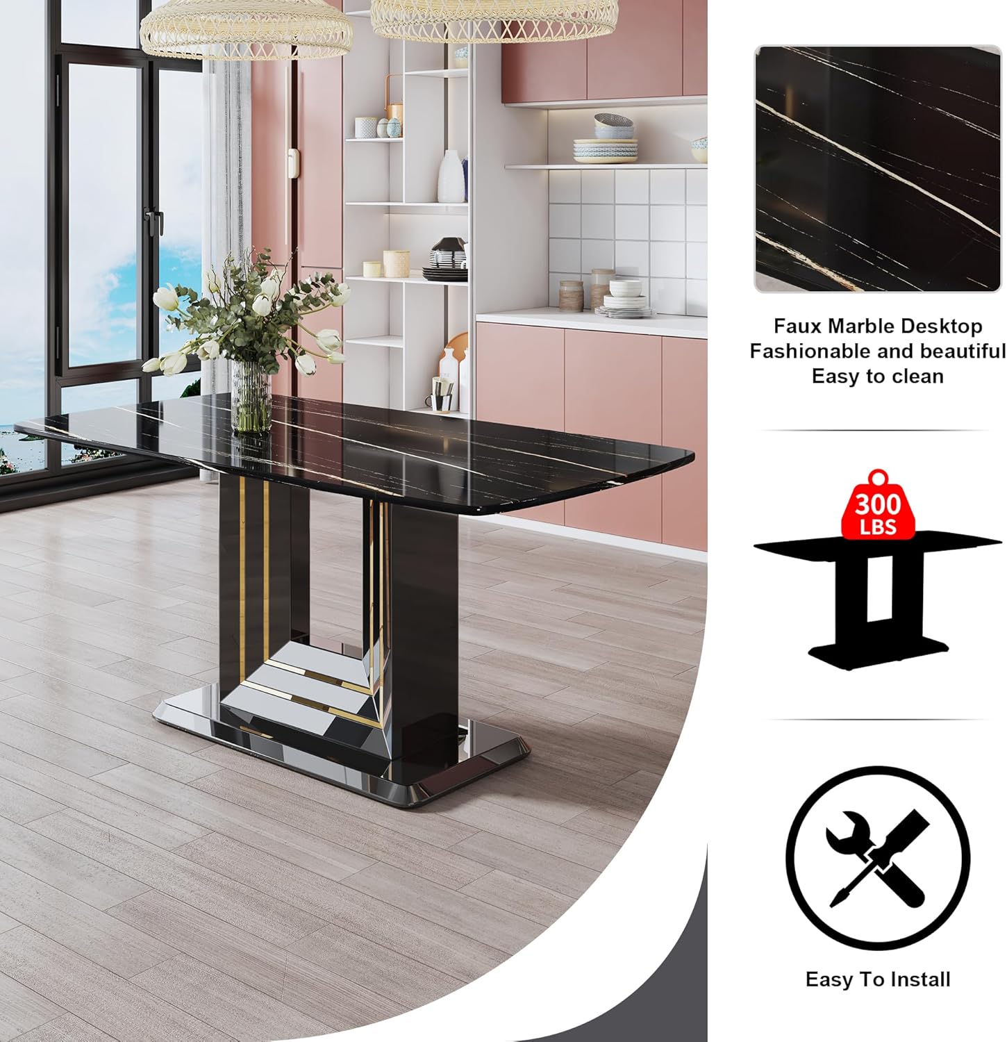 Finding the perfect dining table to blend style, functionality, and durability can be quite the challenge. Recently, we had the chance to experience the Modern 63-inch Black marble Dining Table firsthand-a contemporary rectangular kitchen table that promises to seat 4 to 6 people comfortably while adding a sleek, upscale vibe to any space. With its tempered glass top and striking black plating MDF pedestal, this piece stands out not just for its design but also for its versatility, whether used as a dining surface, work desk, or meeting table. Over the past few weeks, we’ve put this table through its paces in various settings, and in this review, we’ll share our detailed impressions on everything from assembly and sturdiness to aesthetics and practicality. Let’s dive in and see how this table holds up in everyday life.