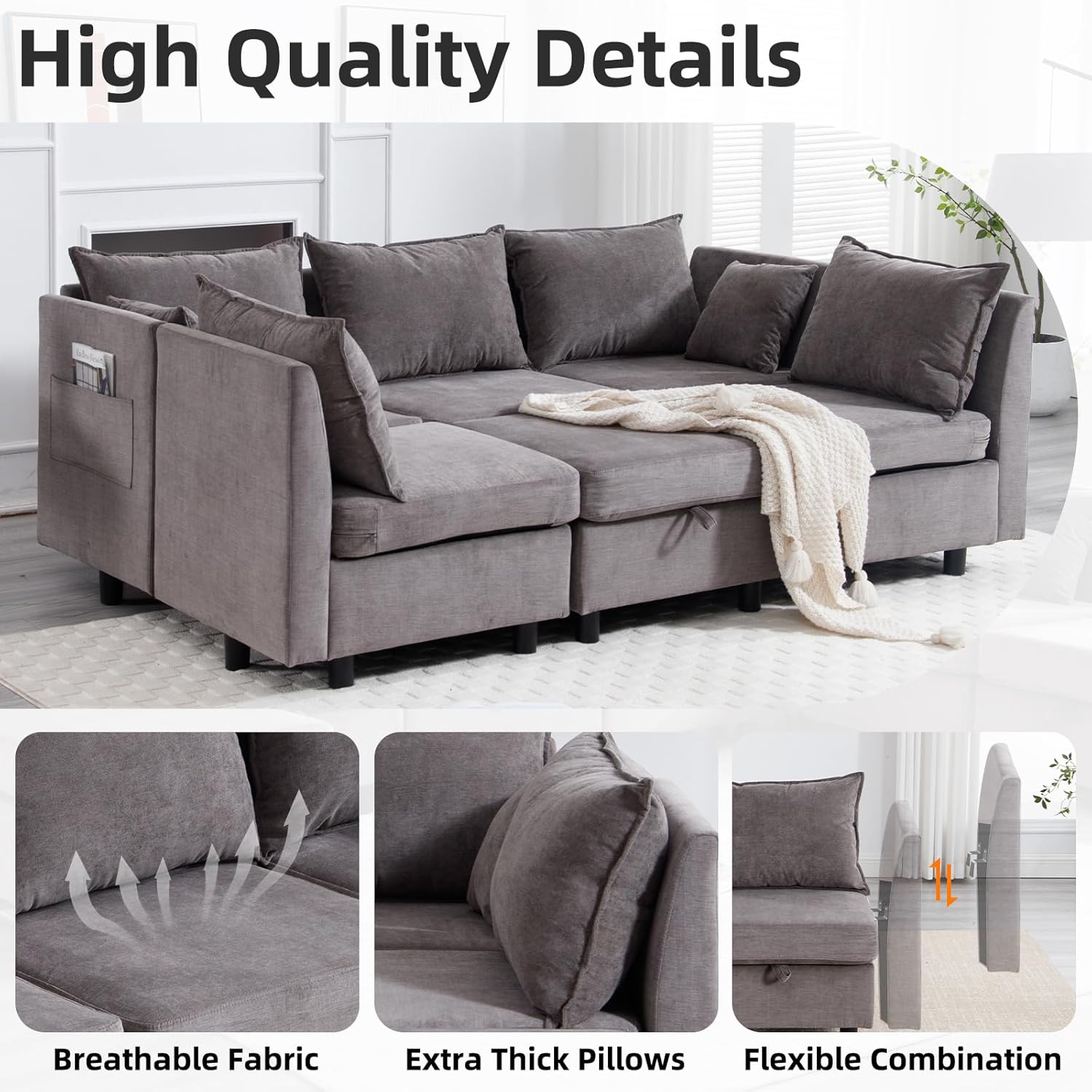After spending considerable time with this modular, convertible sectional, we can confidently say it blends style, comfort, and functionality into one seamless package. the soft cloud fabric paired with high-density foam cushions provides a cozy retreat for lounging, while the sturdy kiln-dried wood frame and metal clips ensure durability and stability no matter how you rearrange the modules. We particularly appreciated the flexibility to customize our setup-from a comfy loveseat to an expansive L-shape or sleeper configuration-which easily adapts to various occasions and living spaces.Plus, the built-in storage compartments and side pockets added an unexpected layer of convenience, helping us keep clutter neatly tucked away without sacrificing aesthetics.