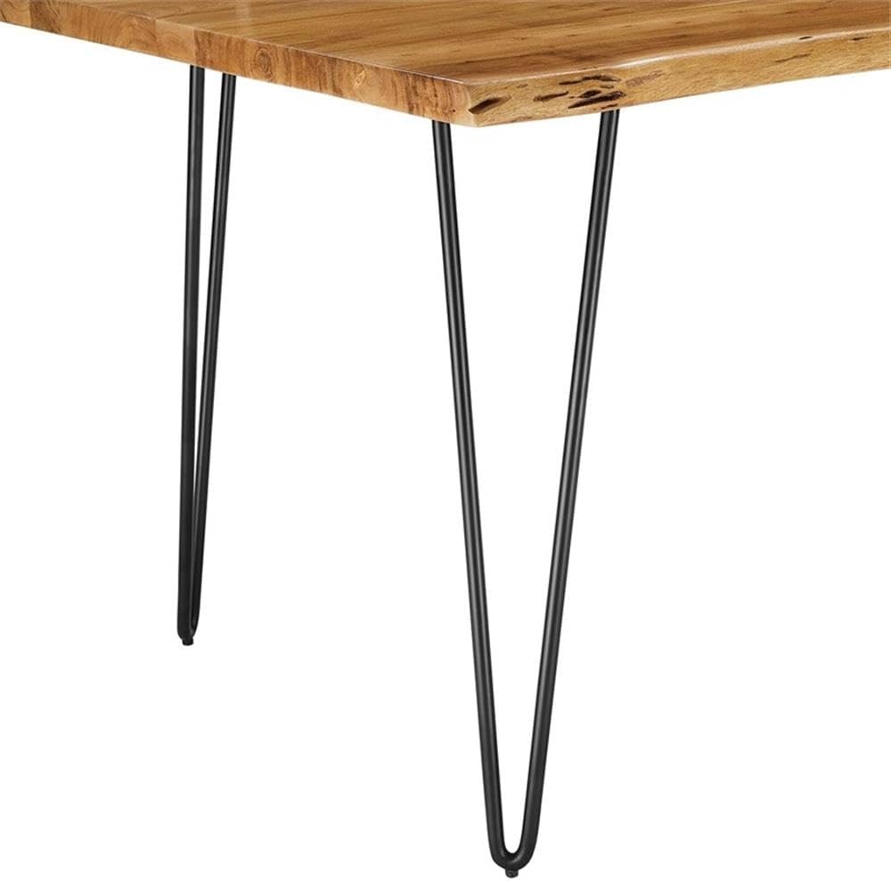 The black natural finish on this dining table brings a remarkable depth and richness to any dining space, effortlessly bridging rustic charm and modern sophistication. Its matte black powder-coated hairpin legs provide a sleek contrast to the warm, natural tones of the acacia wood slab, enhancing the live edge details and accentuating the unique grain patterns. This blend of textures not only draws the eye but also introduces an organic warmth that complements a wide spectrum of décor styles-from minimalist contemporary spaces to cozy mid-century modern interiors. The subtle interplay between dark metal and natural wood elevates the room’s ambience while maintaining a grounded, approachable feel.