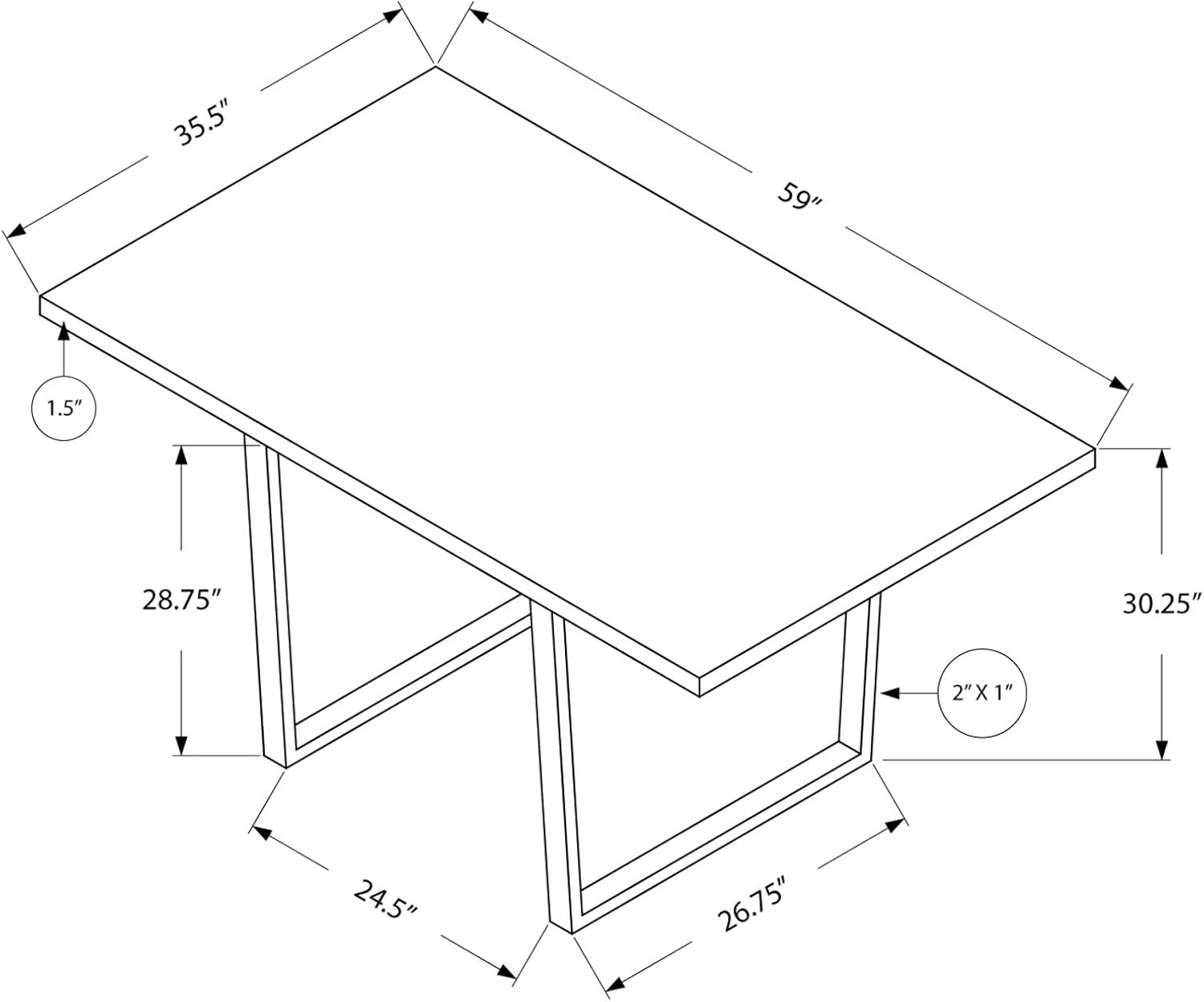 | Dimensions | 59″L x 35.5″D x 30.25″H |