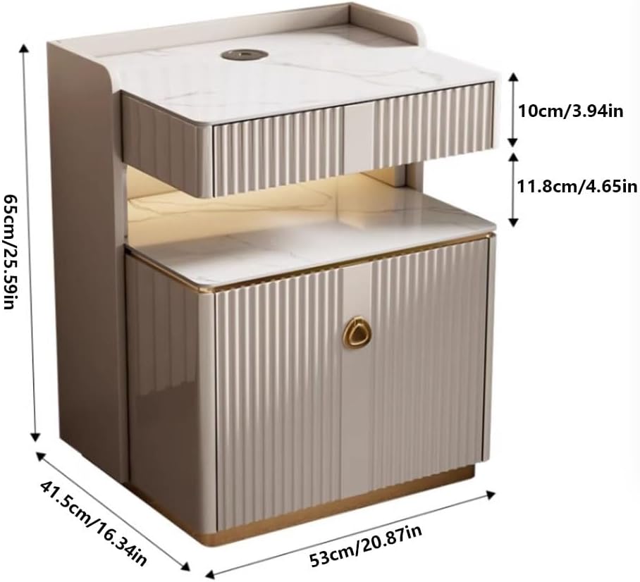 The seamless integration of technology into the design elevates its utility without compromising style. We noticed thoughtful details such as easy-access USB ports and a dedicated wireless charging spot, intelligently placed for everyday convenience. The minimalist lines and smooth edges create a refined silhouette, while the multifunctional aspect allows it to serve as a nightstand, end table, or even a compact workspace companion.Here’s a quick overview of its key aesthetic and build highlights: