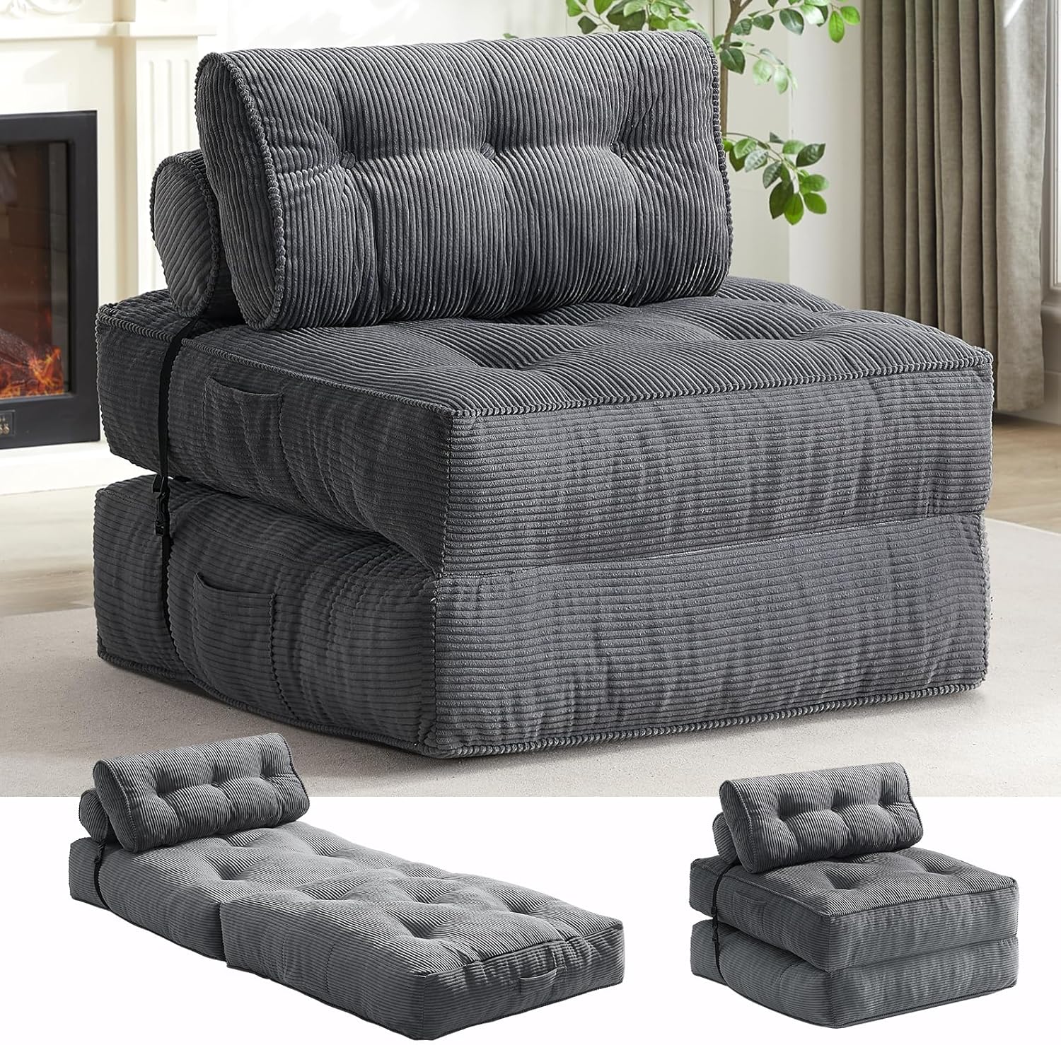 Its versatile 4-in-1 folding capability allowed us to quickly switch between a cushion, sofa, chair, or bed, making it a fantastic multi-purpose addition to our living space. The corduroy fabric added texture and style, complementing our room’s decor flawlessly. We particularly appreciated the portability and the option to creatively combine multiple units for a customized setup.Below is a quick summary of key features we enjoyed:
