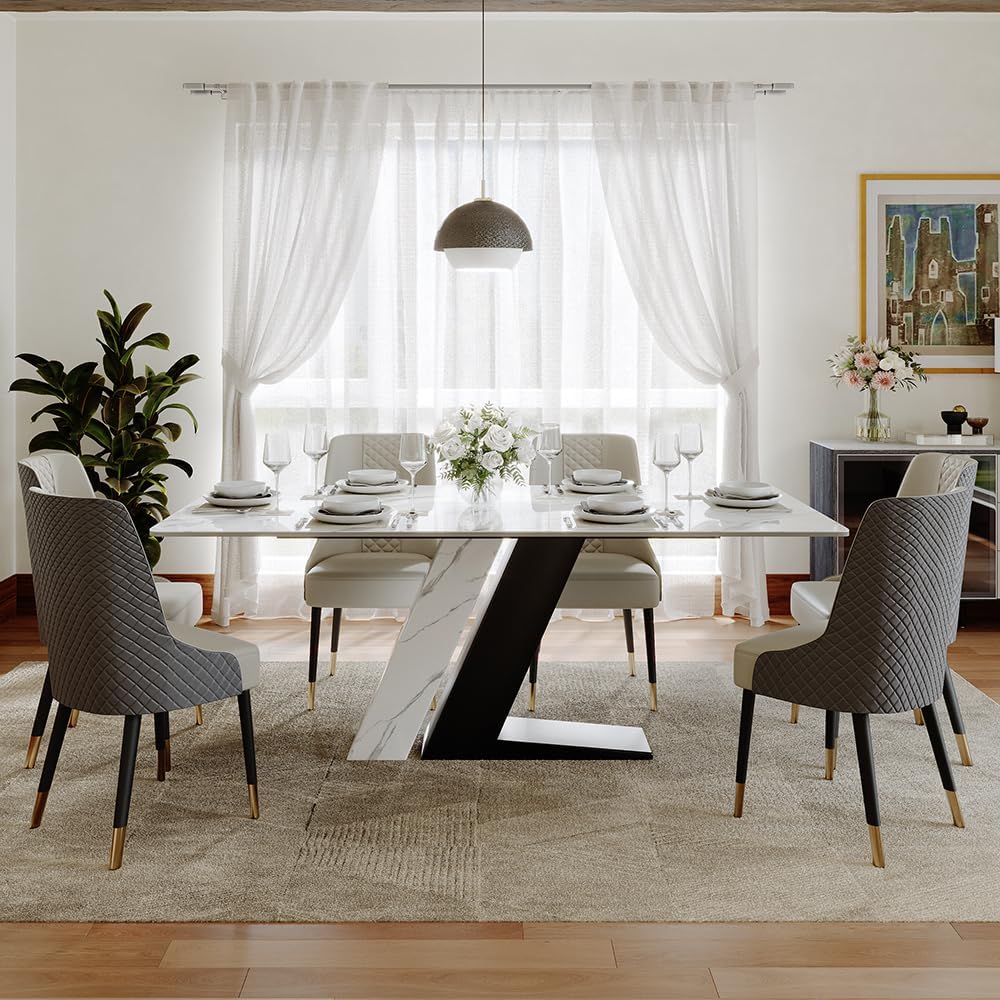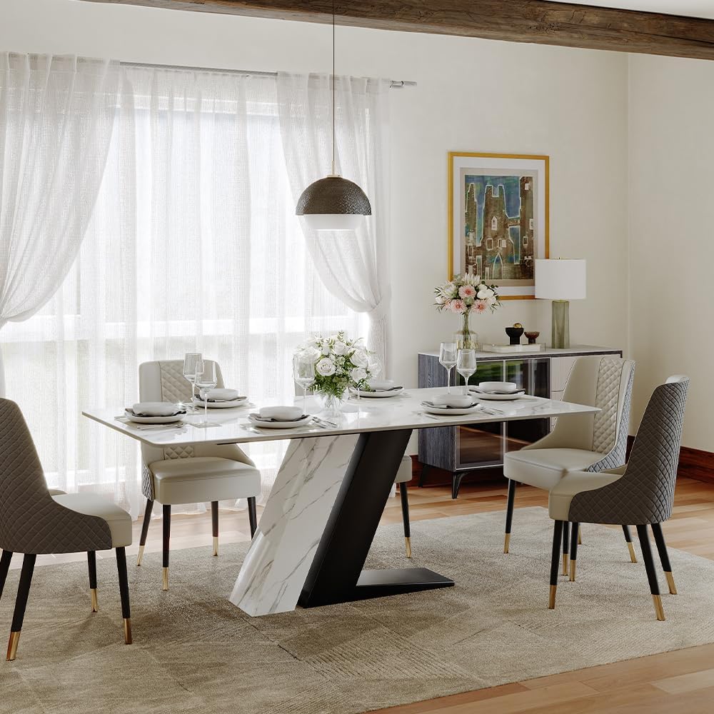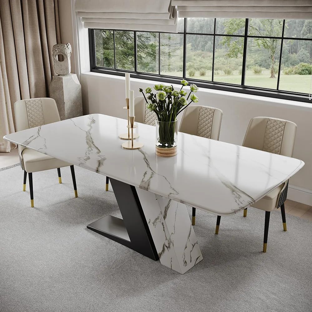 the POVISON 71 Luxury⁢ Modern Dining Table offers a harmonious blend of style, ⁣durability, and functionality‍ that fits beautifully into any contemporary dining space.⁣ Its sintered stone tabletop not only delivers exceptional‌ resistance to scratches and heat but⁢ also brings a sleek,seamless surface ​that’s ‍effortless to maintain. Paired with the distinctive Z-shaped stainless steel ‍pedestal, this table promises both eye-catching‍ design and steadfast support. Whether you’re hosting family dinners or need a versatile ​centerpiece for daily life, this dining table’s spacious rectangular surface ⁣and smooth edges make it⁣ a thoughtful ​and practical choice for any home.