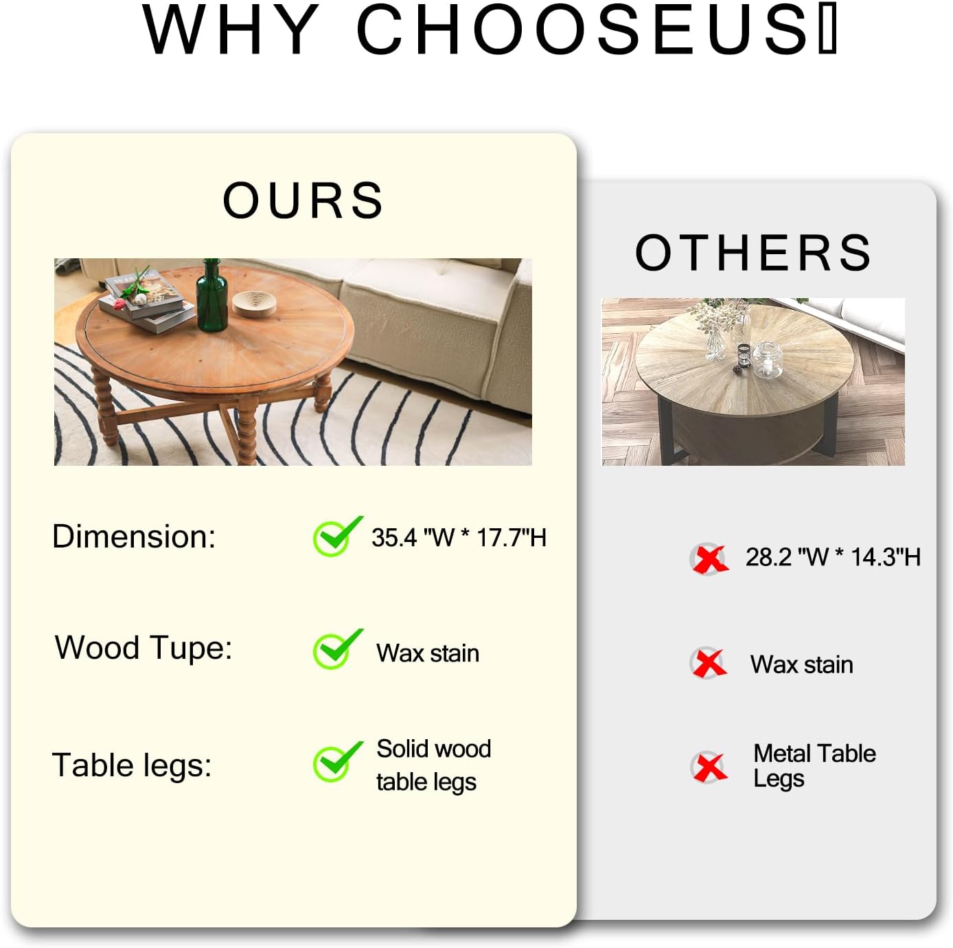 Beautiful solid wood construction with rich natural grain that adds warmth and character the 35.4″ ‌diameter means it’s best suited for medium to large rooms, not tiny spaces