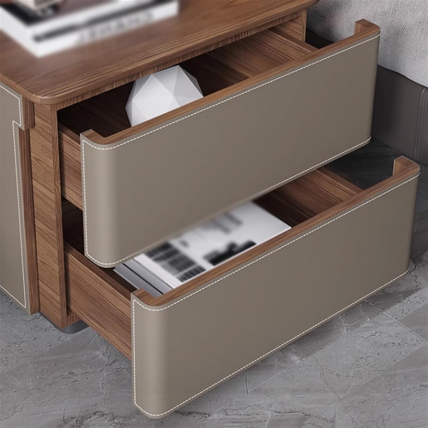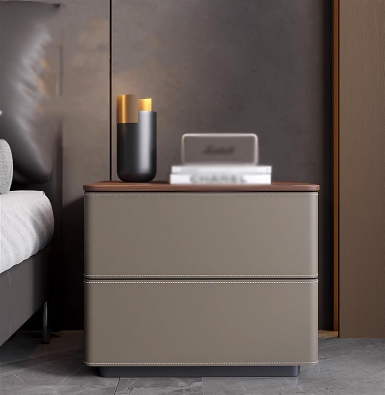 We appreciate the solid color finish for its understated elegance and ability to seamlessly blend into various bedroom decor styles.The vintage tones add a warm, inviting atmosphere to our space without overwhelming it. Thanks to its simple, clean lines and smooth matte surface, the finish feels both modern and timeless. The subtle leather-like texturing on the wood complements the overall aesthetic,providing a tactile appeal that elevates its presence beyond typical bedside furniture.