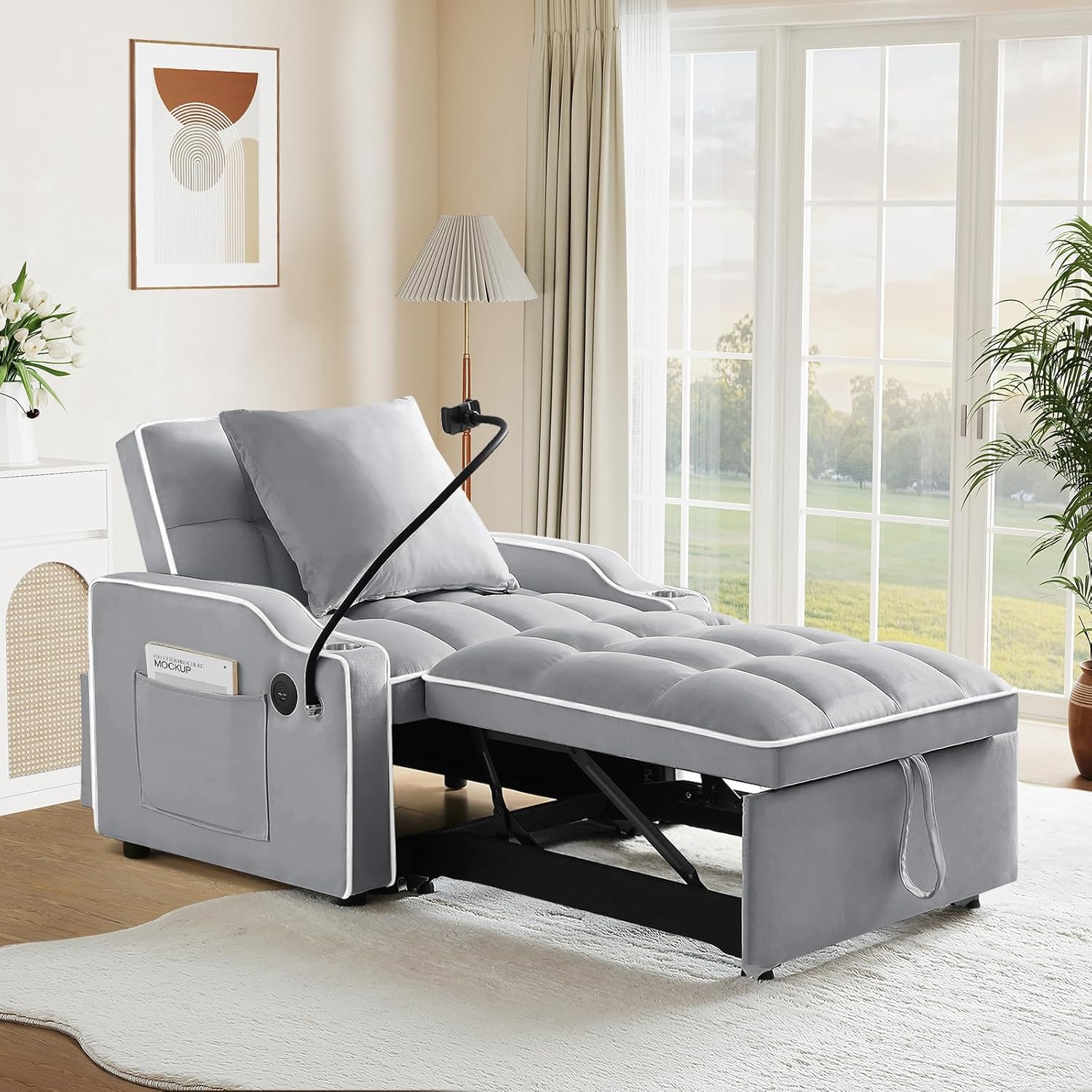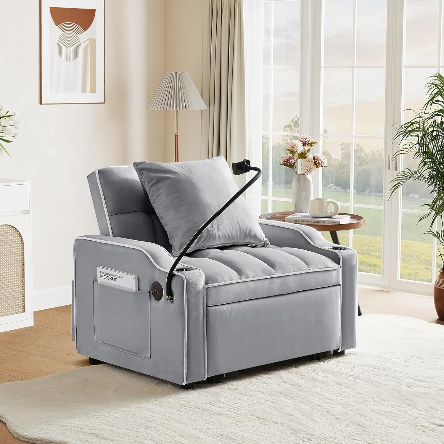 In our search for versatile furniture that perfectly blends comfort, style, and practicality, we recently came across the Convertible Sleeper Chair Sofa Bed – a 3-in-1 marvel that promises to transform any small space into a cozy retreat. Crafted with plush velvet upholstery and a sturdy solid wood and metal frame, this compact piece caught our attention not only for its sleek gray design but also for the thoughtful features like adjustable backrest angles, built-in USB and Type-C charging ports, and even a swivel phone holder. Over the past few weeks, we’ve put this multifunctional futon through its paces-from lounging and working to hosting overnight guests-and now we’re ready to share our firsthand experience with you. Whether you’re trying to maximize a tiny living room, dorm, or office, join us as we break down how this convertible chair measures up in real life.