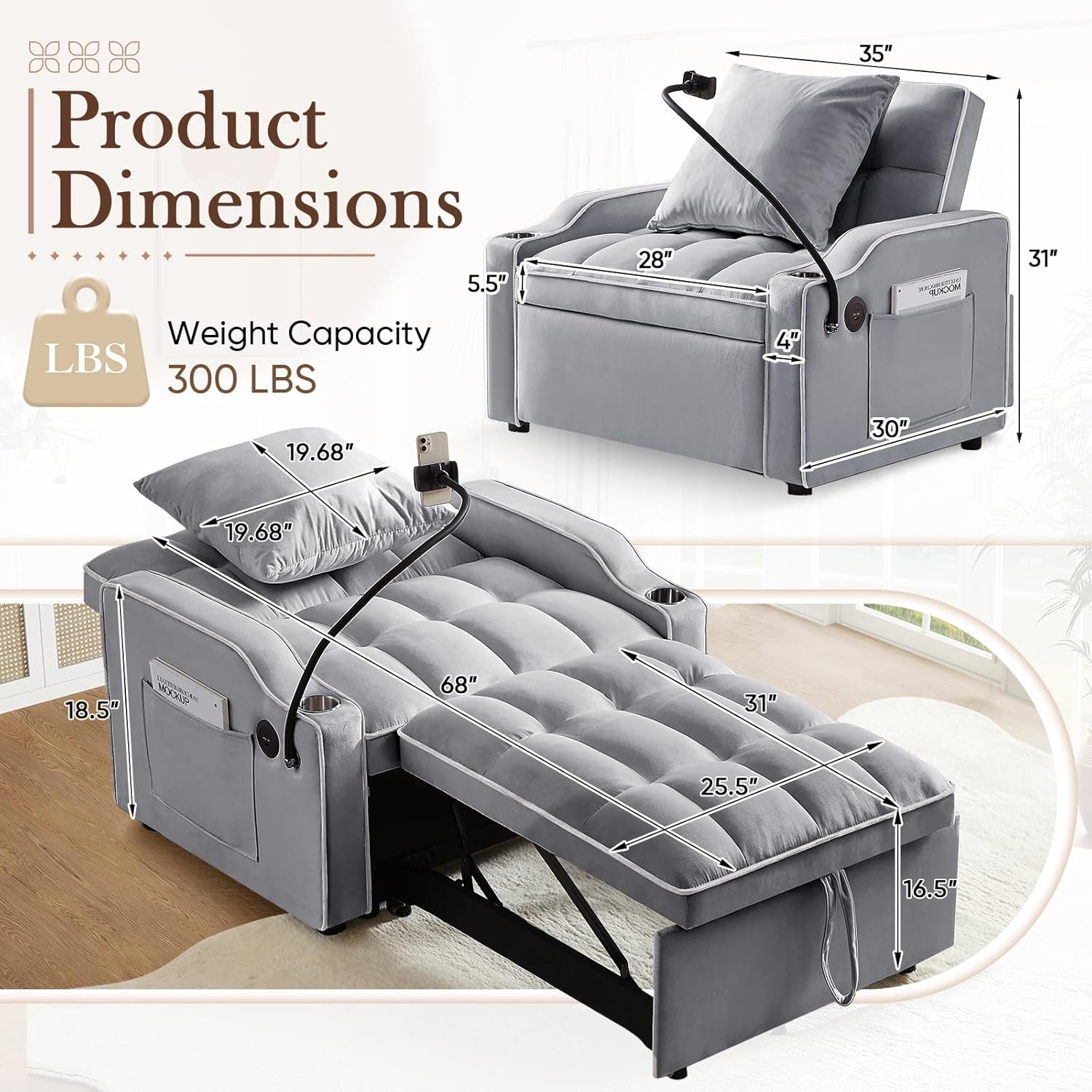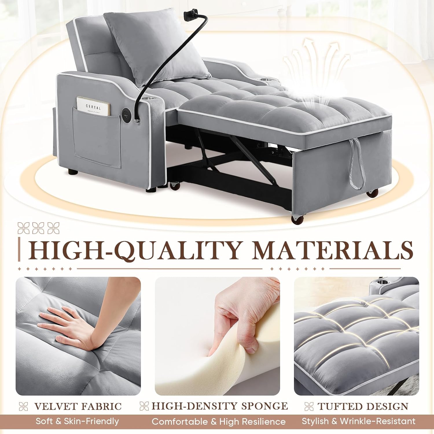 In wrapping up our take on the sleek 3-in-1 velvet sleeper chair sofa bed, it’s clear this piece is much more than just furniture-it’s a clever blend of comfort, functionality, and style designed precisely for those cozy, space-conscious living areas. From its plush velvet upholstery and sturdy frame to the thoughtful additions like USB charging ports, swivel phone holder, and adjustable backrest, it adapts effortlessly to your daily needs, whether you’re lounging, working, or hosting overnight guests.