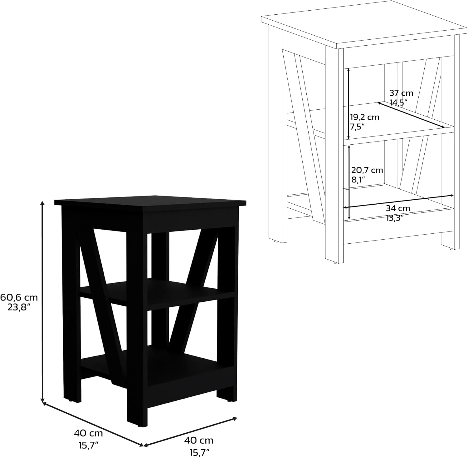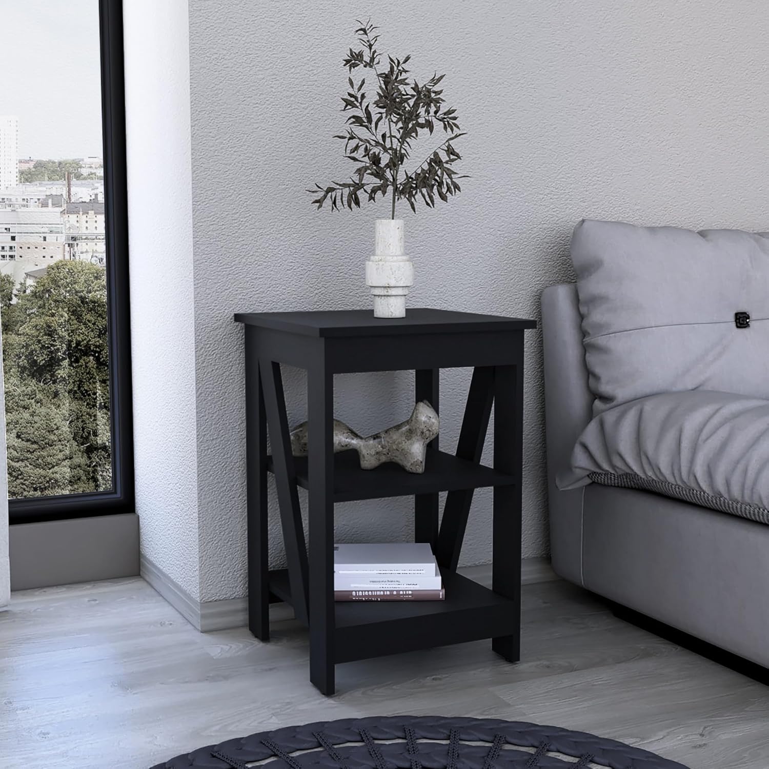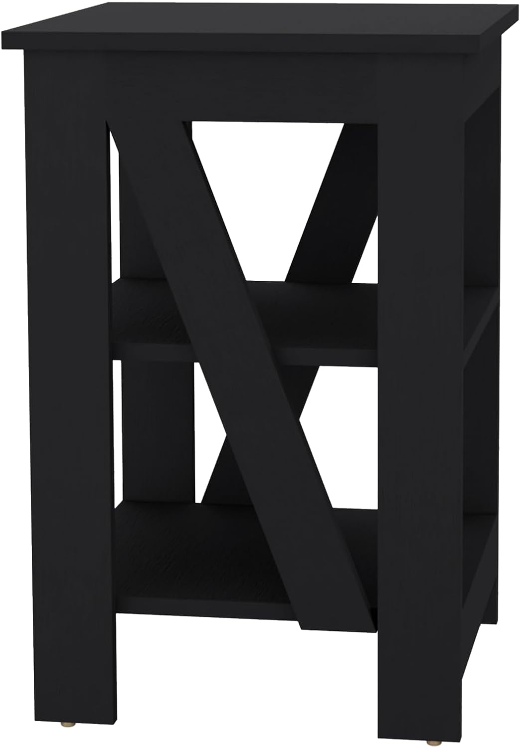 The sleek black finish lends this piece a modern and timeless charm, allowing it to blend effortlessly with various interior styles.Whether your space boasts minimalist Scandinavian vibes, an industrial edge, or classic contemporary tones, this table’s neutral yet bold color anchors the room without overwhelming it. The versatile black shade creates a striking contrast against lighter walls or complements darker hues, making it a flexible choice for bedrooms, living rooms, or even office nooks. Its simplicity also provides the perfect backdrop to highlight decorative items placed on its shelves, helping your personal style shine through.