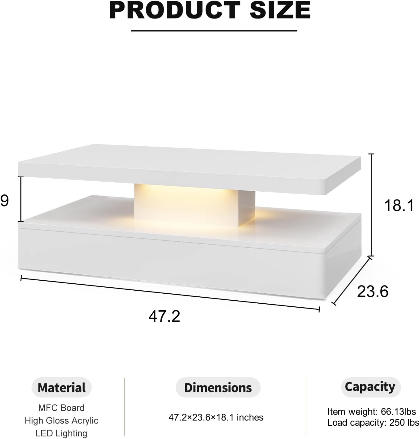 We’ve found this‌ coffee ​table to be an excellent fusion of contemporary design ⁢and ⁣practical features. Its high-gloss white finish​ radiates a sleek, sophisticated vibe while seamlessly fitting into various interior styles, from minimalist to modern chic. Measuring 47.2 × 23.6 × 18.1 ⁢inches, it provides ample surface space‌ for everything from your‌ morning coffee to decorative accents,​ without feeling bulky or overwhelming your living room.What ‍truly stands out is the built-in⁢ LED⁢ system – with the touch of a button or the ⁣app control, you can cycle through 60,000 colors, adjust brightness, and sync the lighting with music, turning ⁤your centerpiece into an ambient mood-setter that transforms the space instantly.