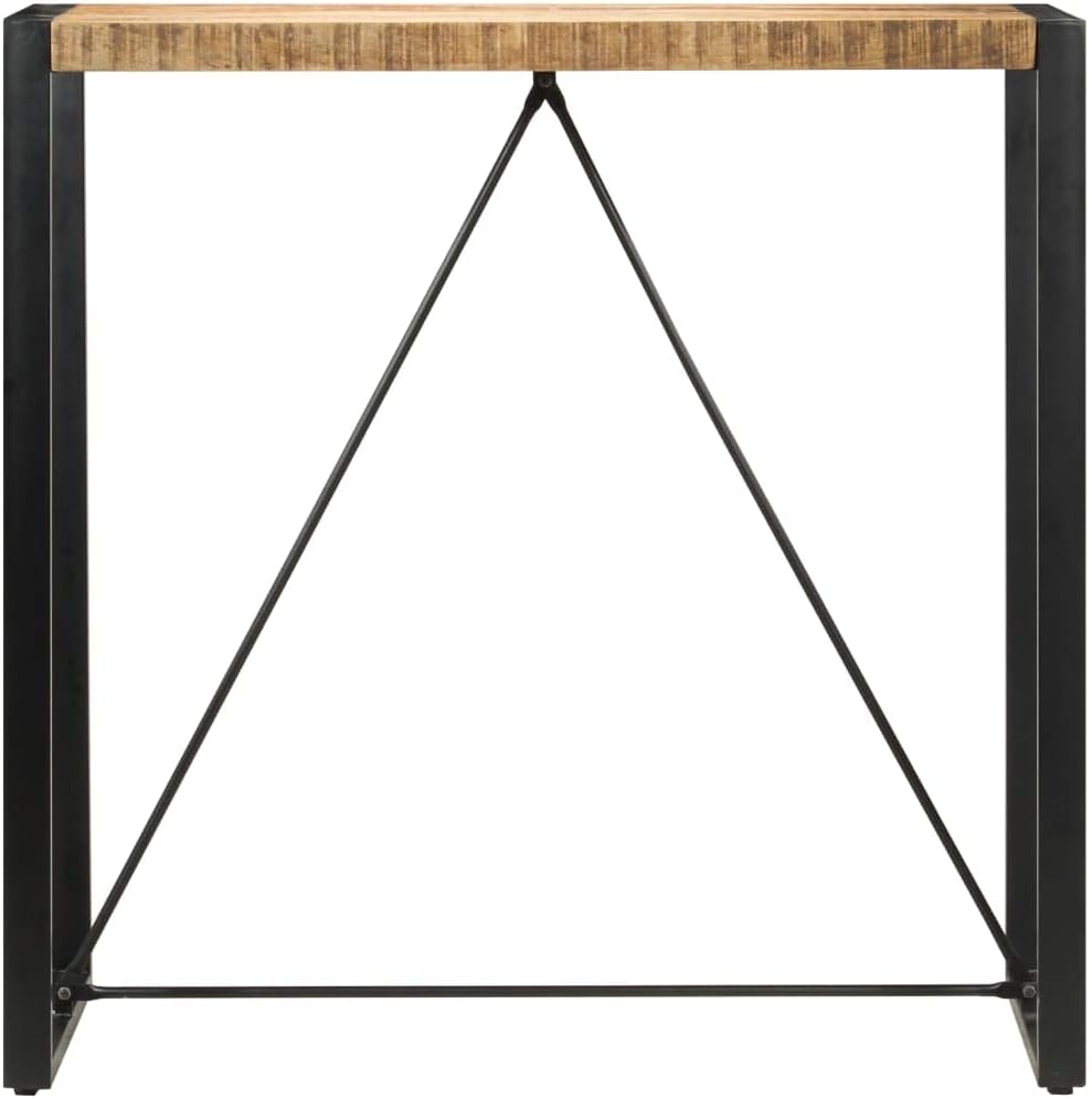 In integrating this bar table into our kitchen and dining areas, we immediately noticed how its solid mango wood surface brought warmth and character to the space. The unique wood grain patterns meant no two pieces look alike, adding a personalized touch that feels both natural and refined. Its dimensions (43.3″ x 23.6″ x 43.3″) make it an ideal centerpiece without overwhelming the room, providing ample space for casual meals or socializing over drinks. The industrial-style steel legs contribute not just to the table’s stability but also to the raw, urban vibe that effortlessly complements a variety of interior themes – from contemporary lofts to cozy rustic spaces.