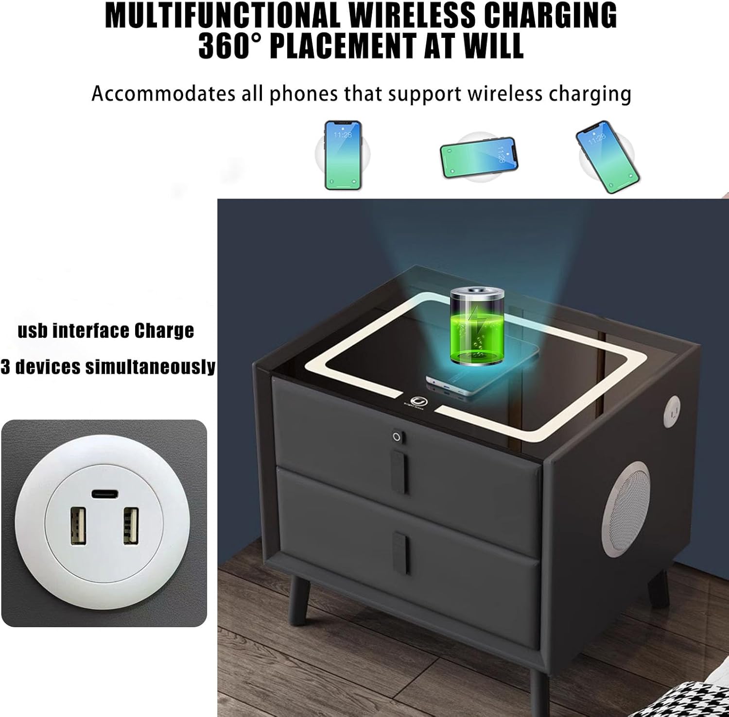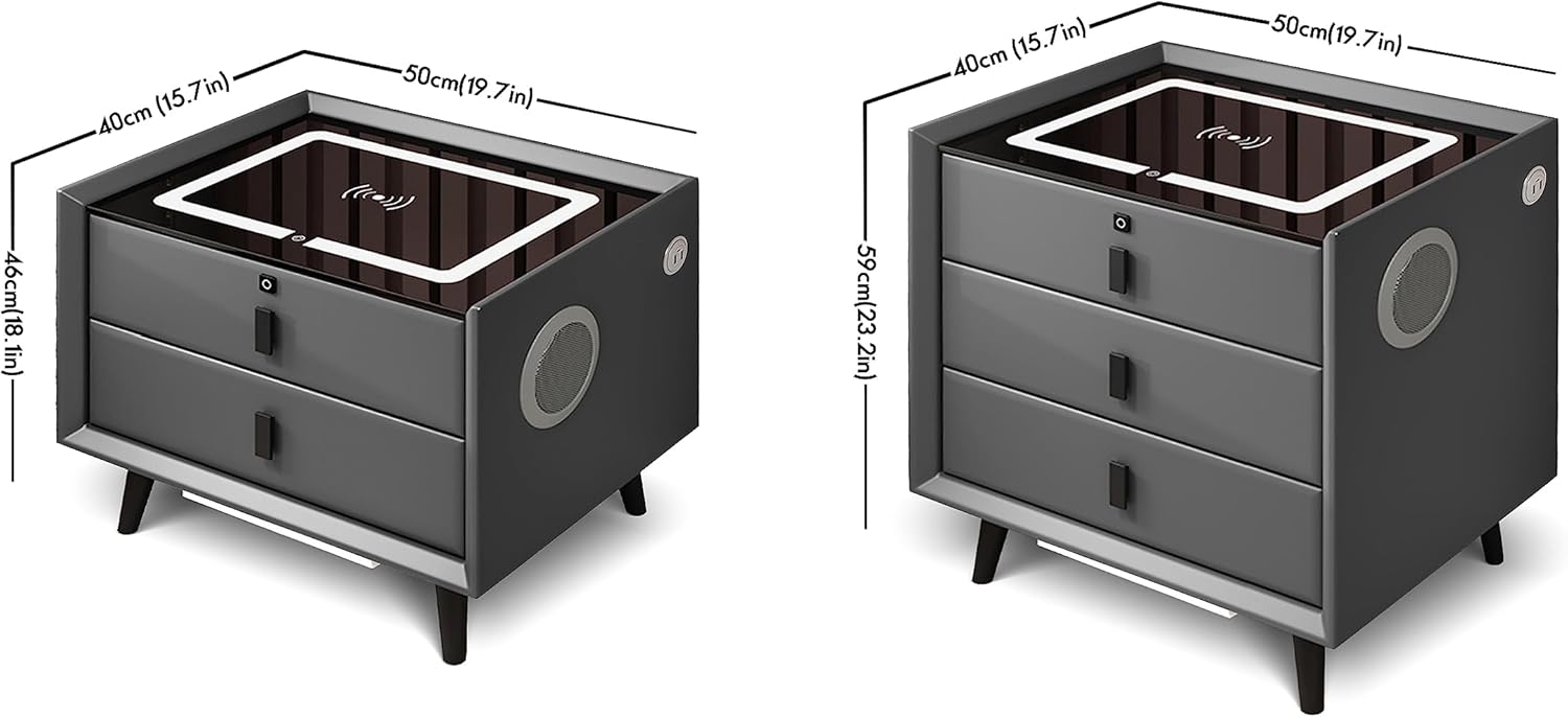 After thoroughly examining every feature, we find this smart nightstand to be a seamless blend of technology, security, and style. Its fingerprint lock system offers a robust safeguard for your valuables,combining advanced self-learning algorithms with ease of use,ensuring only authorized access. The integrated dual speakers deliver impressive sound quality, filling your room with crisp audio free from interference within a 10-meter range. Coupled with the tri-color LED night light,which lets you customize brightness and color tone,this piece creates both a functional and soothing bedroom environment.