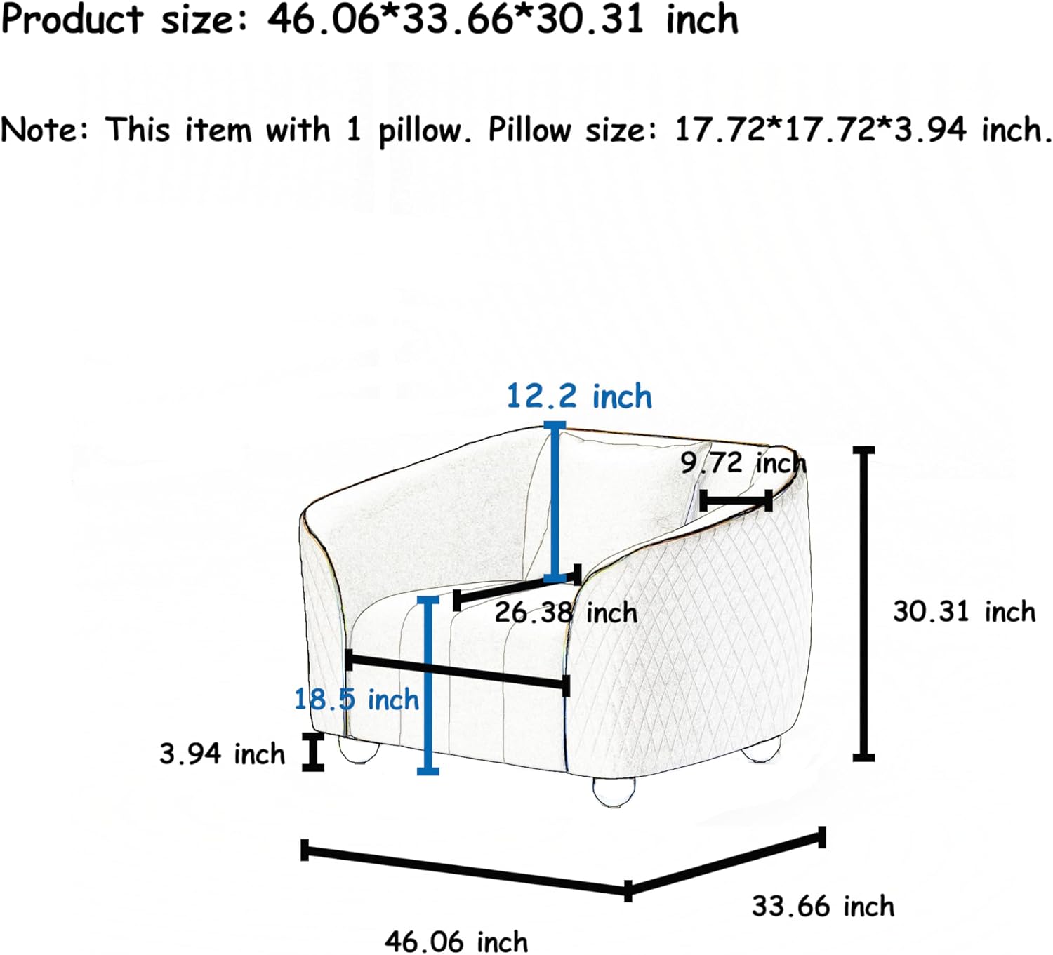 | Armchair Size | 46.06″ x 33.66″ x 30.31″ – perfect for cozy spots |