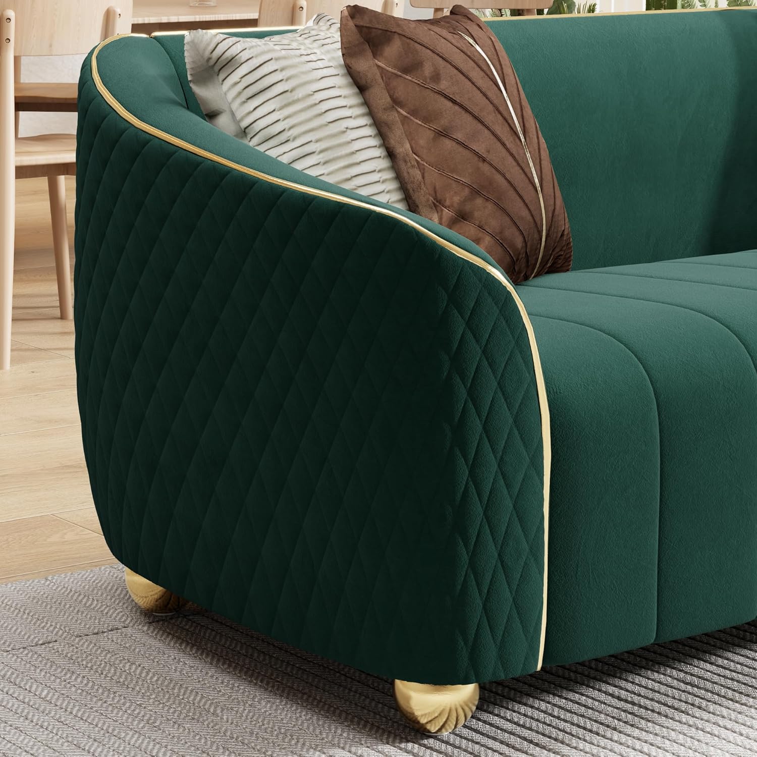 Beyond softness, the craftsmanship truly shines in the upholstery quality. The velvet is easy to clean and durable,built to withstand everyday wear and tear in busy homes or offices. The sturdy gold-toned legs are not only stylish but also thoughtfully designed to protect flooring from scratches, contributing to the set’s long-lasting appeal. The spacious dimensions comfortably accommodate multiple sitting arrangements, whether it’s a quiet evening for two or a lively gathering. Below, we’ve summarized some key comfort features that impressed us: