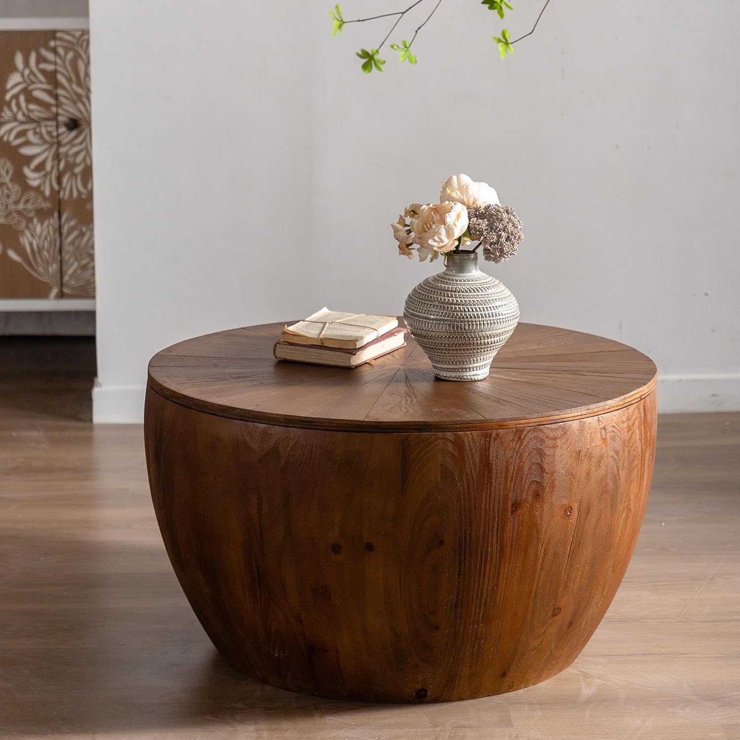 This charming coffee table embodies a perfect blend of rustic appeal and functional innovation.⁢ Crafted with high-quality fir wood on ​the top and sides, combined with a sturdy MDF base, it offers durability and a‌ stable construction that ‍resists shaking.The vintage ⁢oil finish enhances its wooden ‌texture and retro craftsmanship, ⁢giving the piece a nostalgic character ⁤that adds warmth and personality⁤ to any living space. Measuring 31.50″ in both length and width with a height ‌of 17.72″, its barrel ‍shape makes a stylish focal point while providing ‍a surprisingly⁣ spacious tabletop-ideal for displaying your favorite‌ plants, photos, or small decor items.