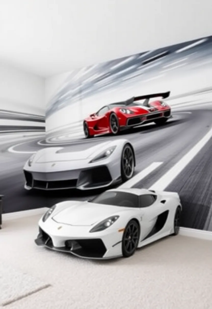 When selecting paint or decor elements, think about combining these striking colors with complementary accents that can simulate the racing world. Here are some ideas to get started: