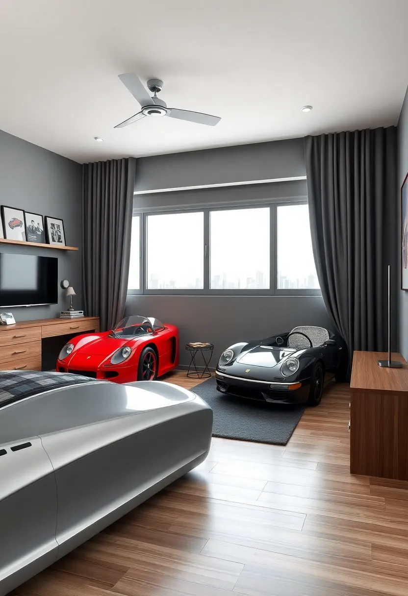- Accessories: Opt for furniture in metallic finishes or fixtures that resemble car parts, ensuring a cohesive look.