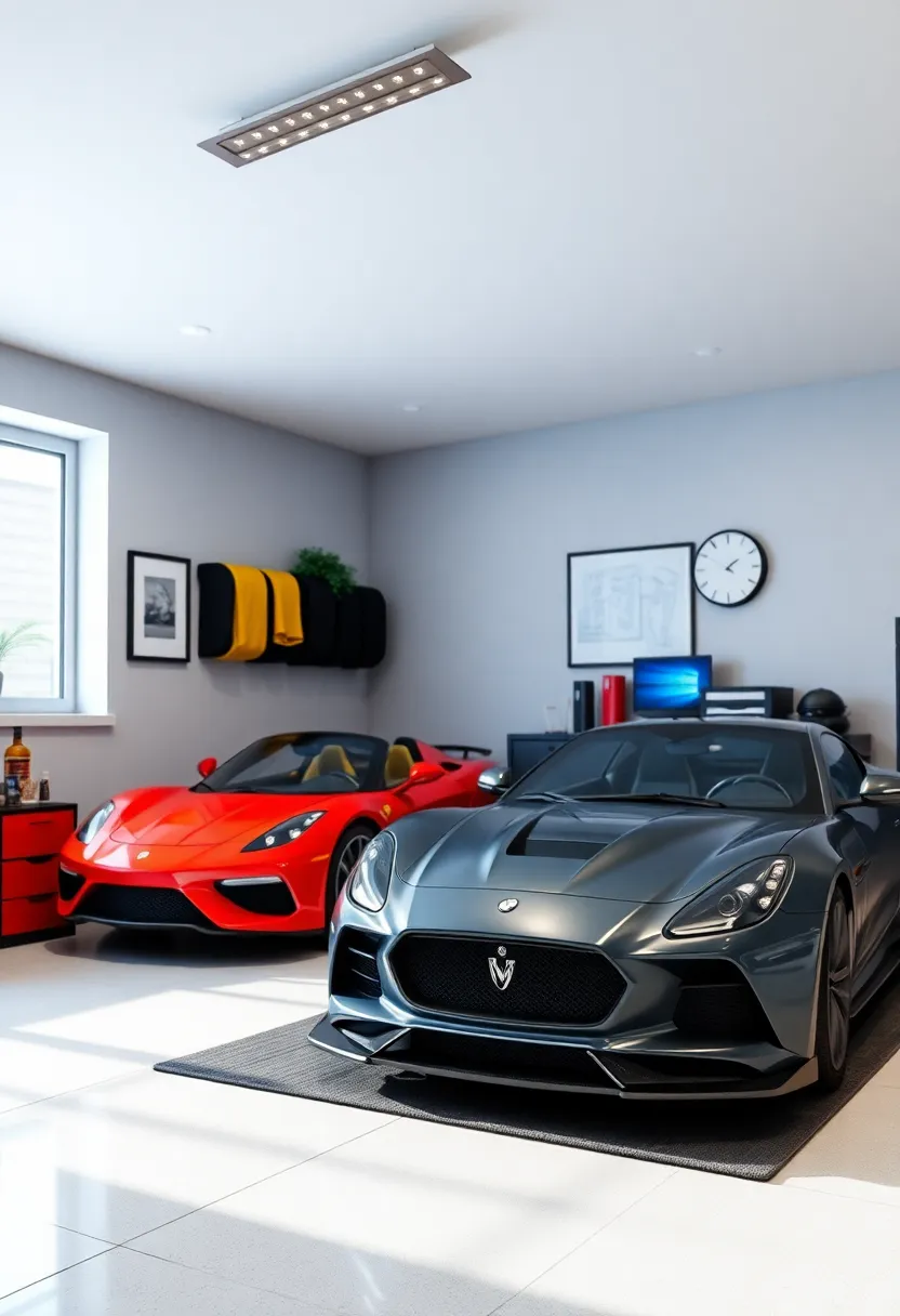 Integrate interactive workstations equipped with smart tools that connect to mobile devices, offering step-by-step guides for car repairs or enhancements. A Bluetooth speaker system can be seamlessly connected to play the latest tunes or audiobooks, creating an inspiring workspace. Utilize a sleek, modular storage system that incorporates charging stations for devices, ensuring everything stays organized and powered up. These smart features will create an inviting and stimulating environment, making the garage the ultimate retreat for any aspiring mechanic or car lover.
