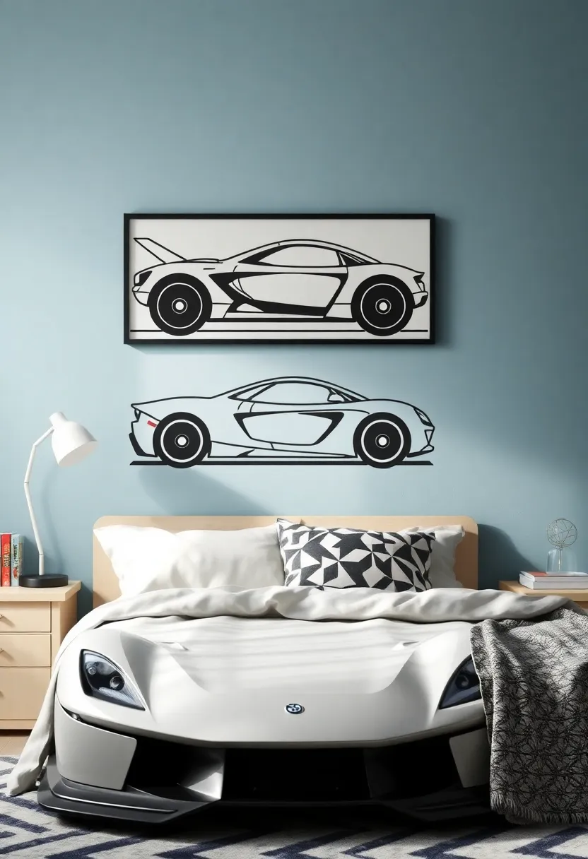 Creating a car-themed space for a teen boy goes beyond simply picking out decor; it involves a clever balance of functionality and style that caters to his everyday needs. Start by integrating themed furniture that serves dual purposes. For instance, a racing car bed not only adds excitement but can also incorporate storage drawers for toys or clothes. Consider desks that mimic the design of a car dashboard, providing a playful workspace without sacrificing practicality.Utilize built-in shelving that mimics garage shelving, allowing him to proudly display car models and books while keeping the room organized.
