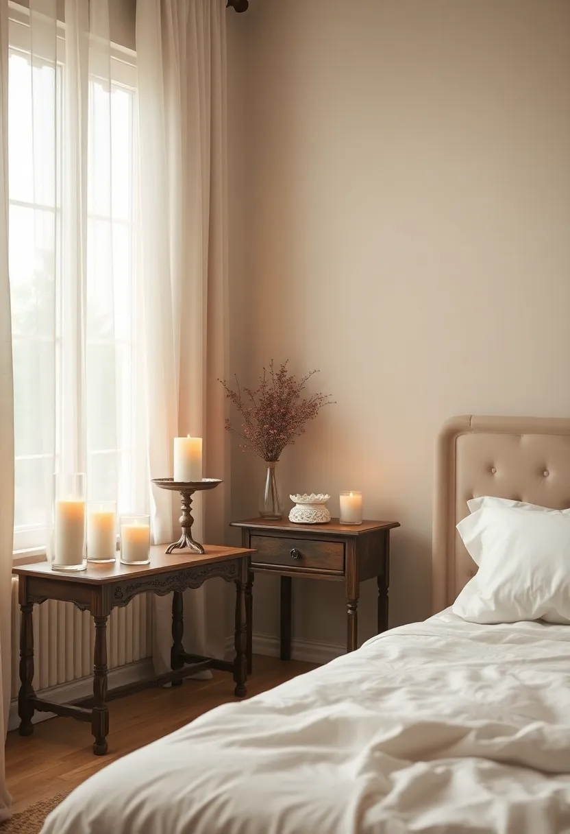 to set the stage for romance in your vintage-inspired bedroom, incorporating classic candle displays is essential. Imagine the soft flicker of candlelight dancing across aged wooden furniture and delicate lace curtains. Consider using an array of vintage candle holders that vary in height and design—crystal, brass, or even ceramic can elevate the overall aesthetic. Place these holders on bedside tables or dresser tops, creating a captivating focal point that draws the eye and enhances the room’s warmth. Mixing various styles of candles, such as pillar, taper, or tealights, can add visual interest and allow for mood variation according to the occasion.