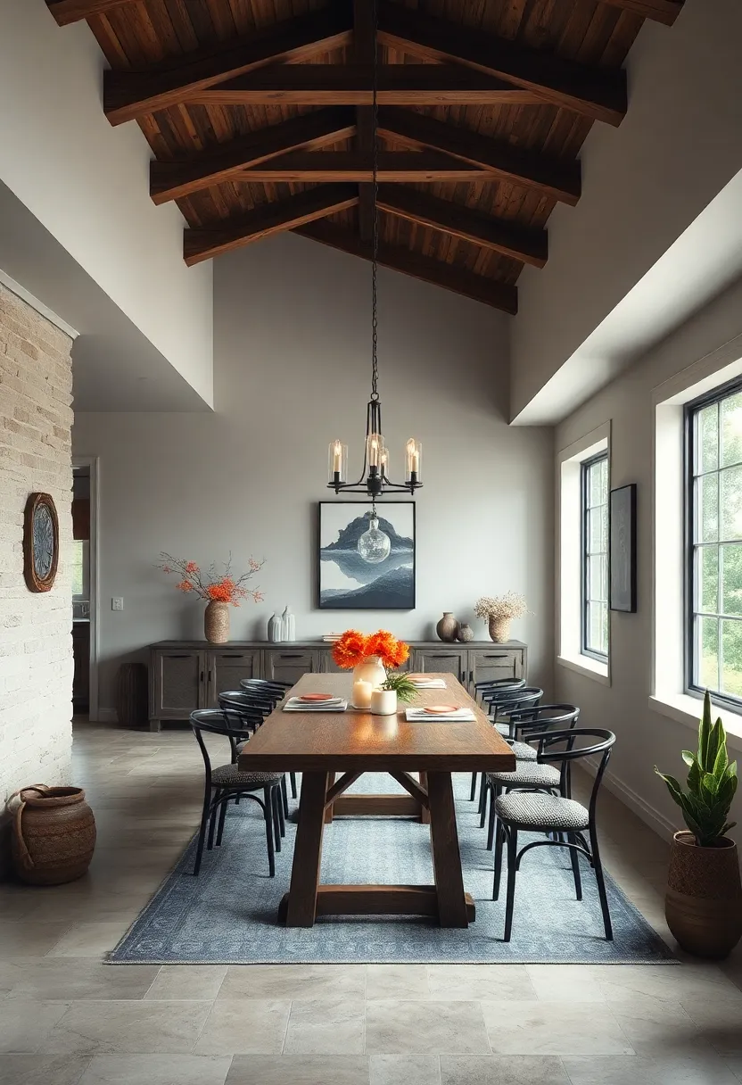 To achieve this layered look, consider incorporating the following elements for an authentic farmhouse dining experience: