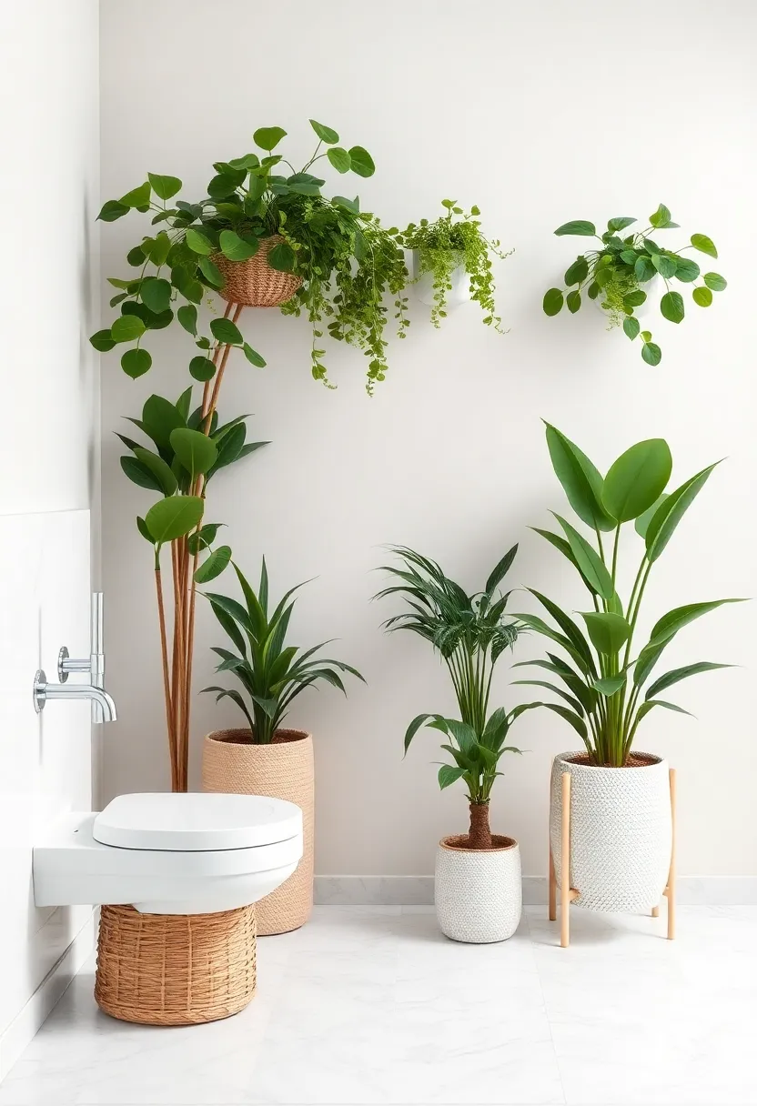 creating an inviting bathroom atmosphere can be transformed by thoughtfully designing layers of texture using plants of varying heights and styles. By incorporating a mix of tall, medium, and short plants, you not only add depth but also a feeling of lushness that can make your space feel like a serene retreat. For instance, placing a tall snake plant in a sleek corner pot can draw the eye upward, establishing a sense of height in the room, while smaller plants like pothos or fiddle leaf figs can be nested on shelves or countertops, creating a multi-dimensional effect. Consider the textural differences as well; pairing the spiky leaves of a dracaena with the soft, round foliage of fern adds visual interest.